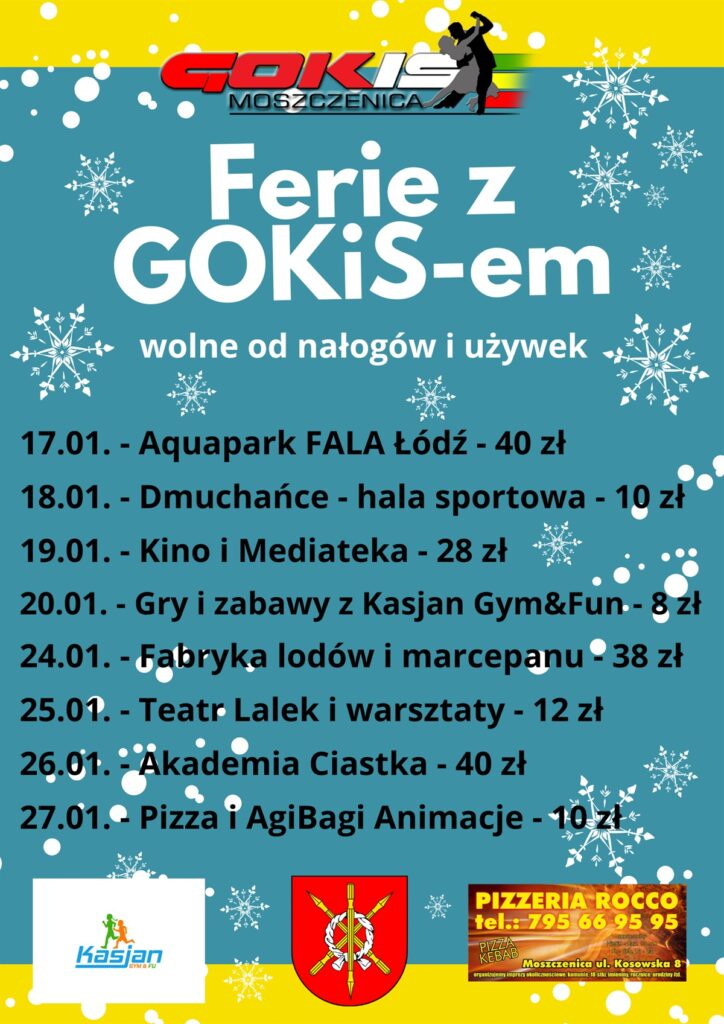 Gminny Ośrodek Kultury i Sportu w Moszczenicy zaprasza najmłodszych mieszkańców gminy Moszczenica do wspólnego spędzenia ferii zimowych 2023.