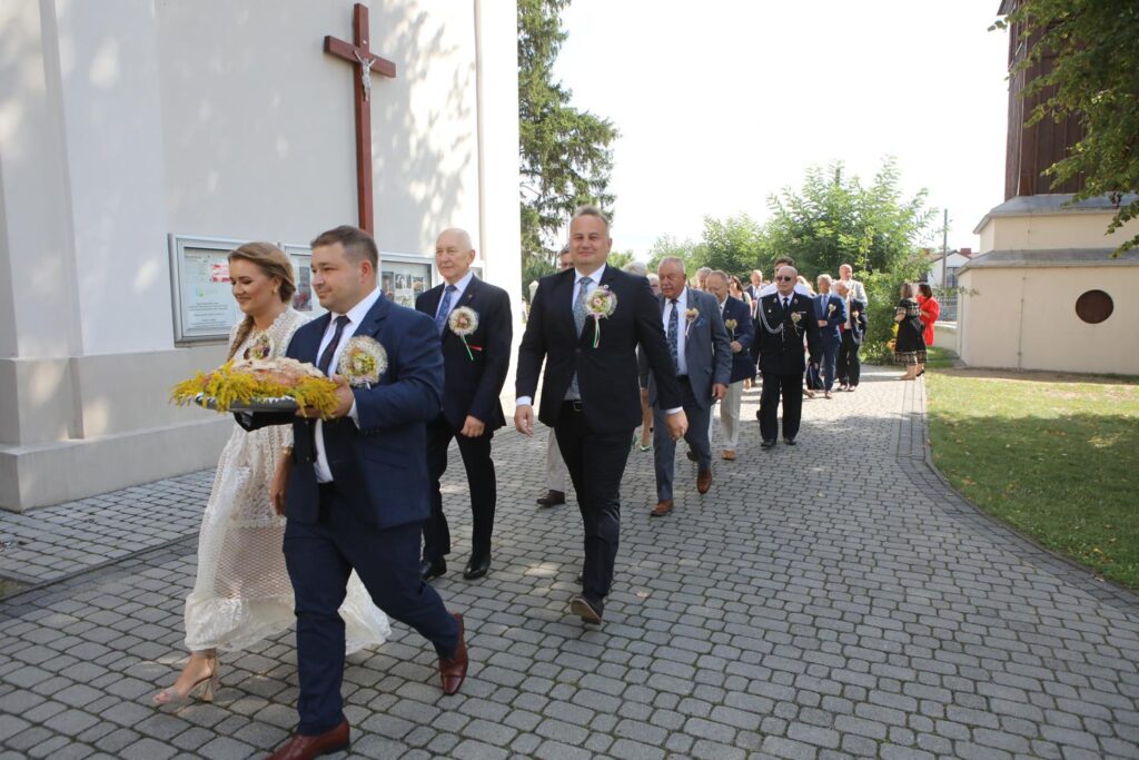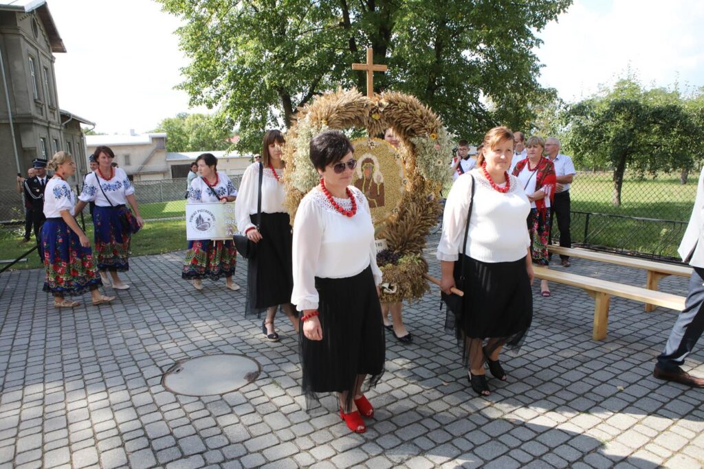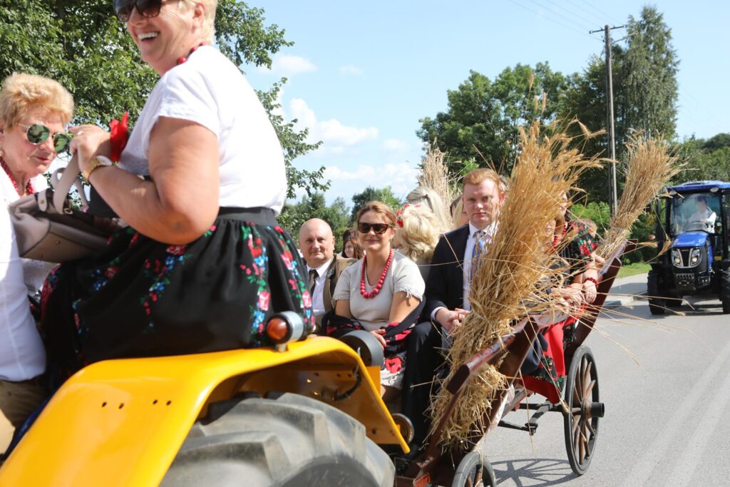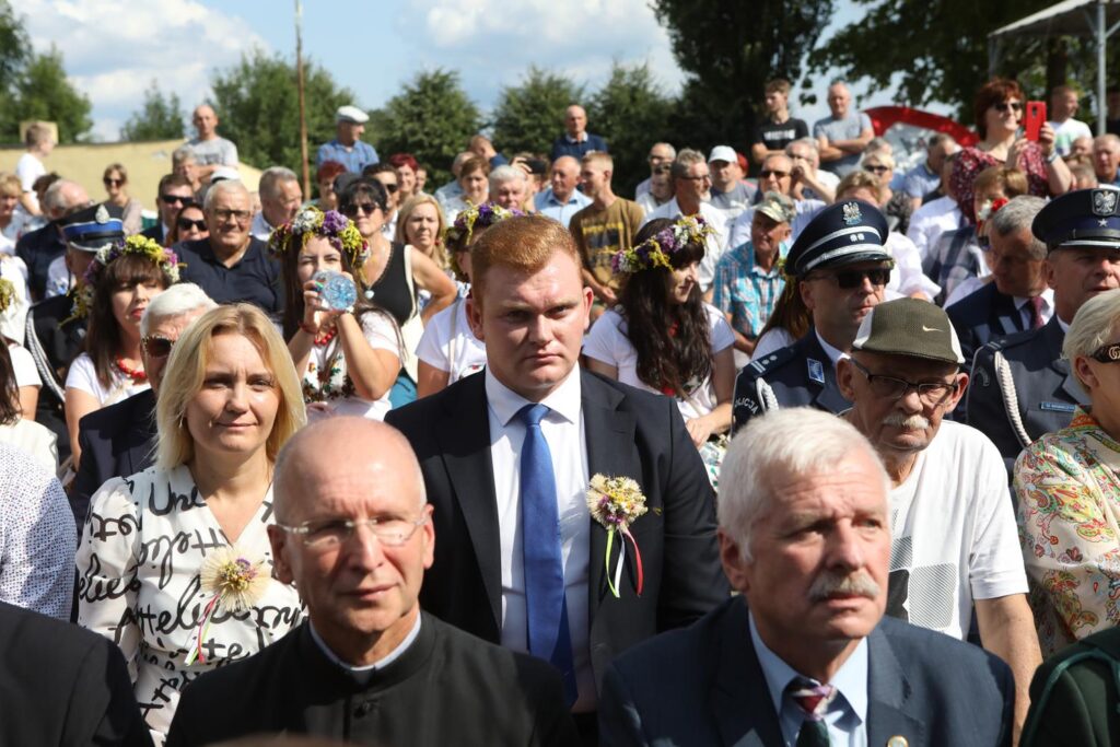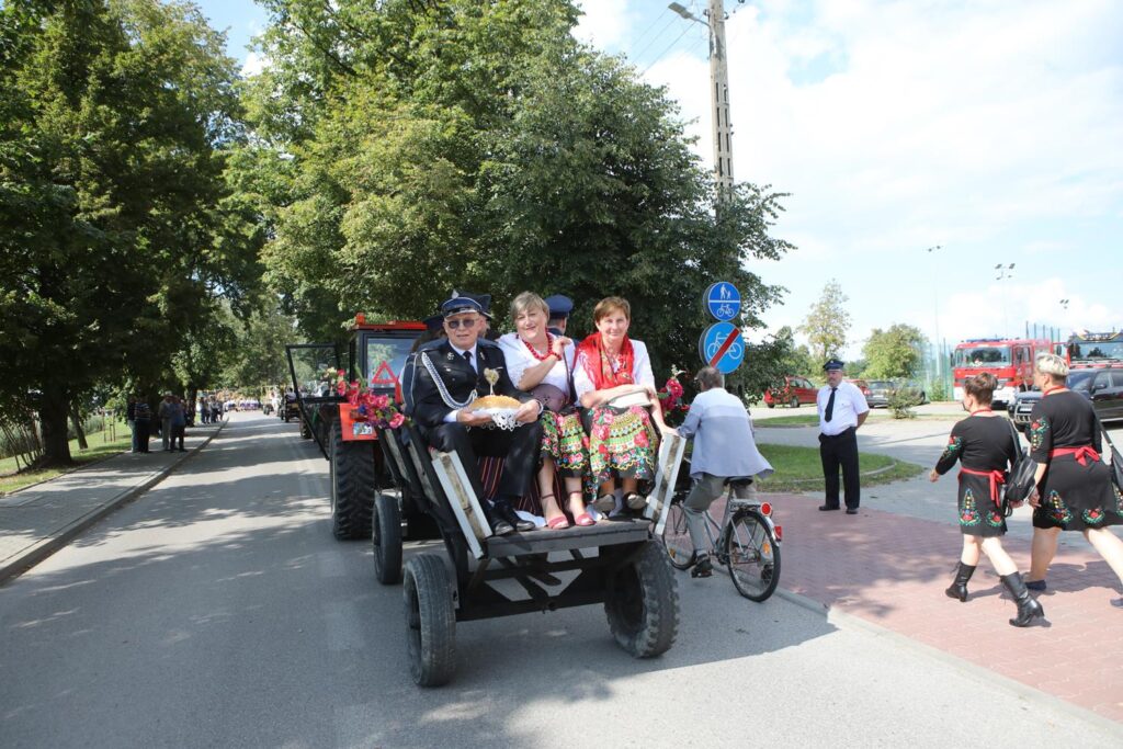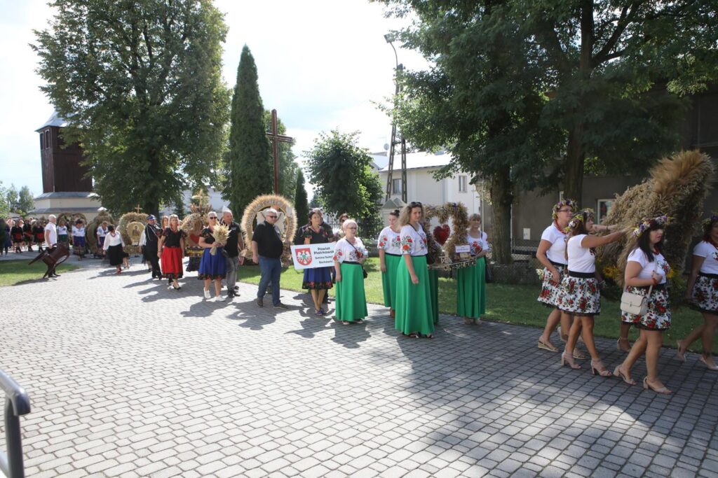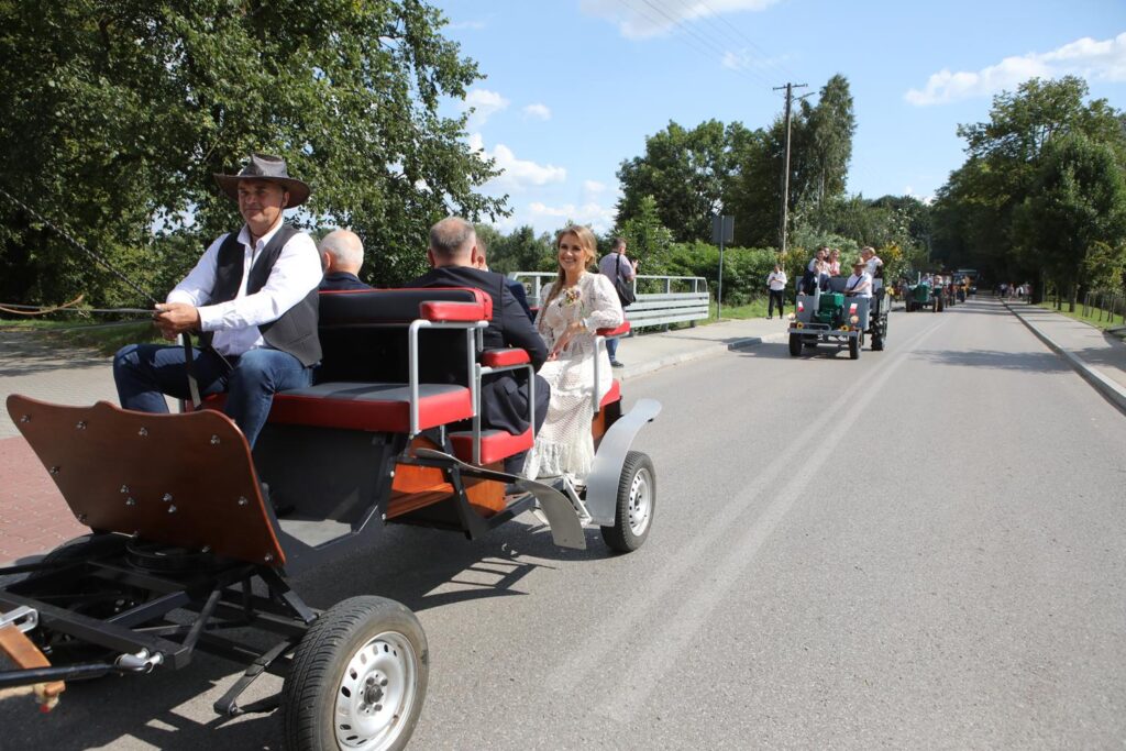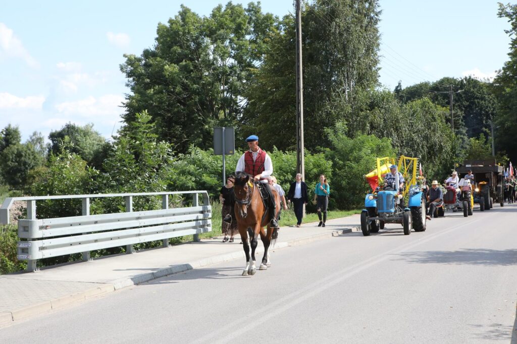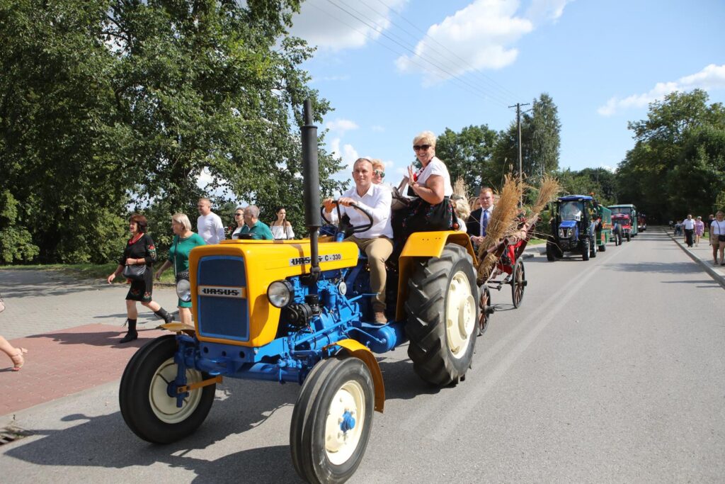Na ceremoniał uczestnicy dotarli w korowodzie, z udziałem prawdziwych perełek, jakimi są dawne traktory, które rolnikom nadal służą w codziennej pracy. Wozami przyjechali goście i 13 delegacji wieńcowych, które prowadziła Młodzieżowa Orkiestra Dęta z Grabicy i liczne poczty sztandarowe.