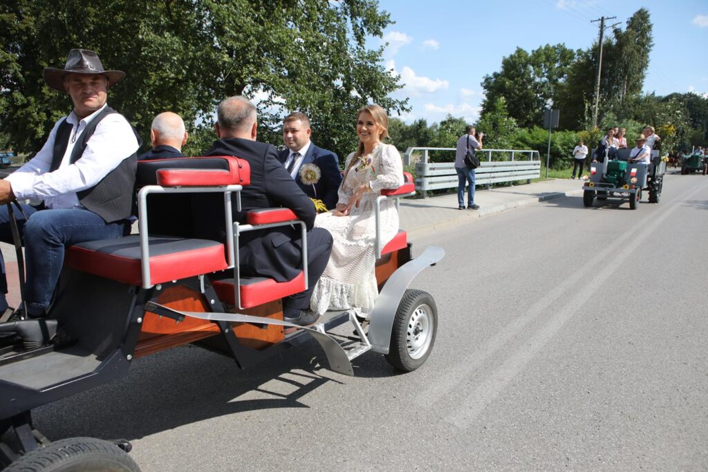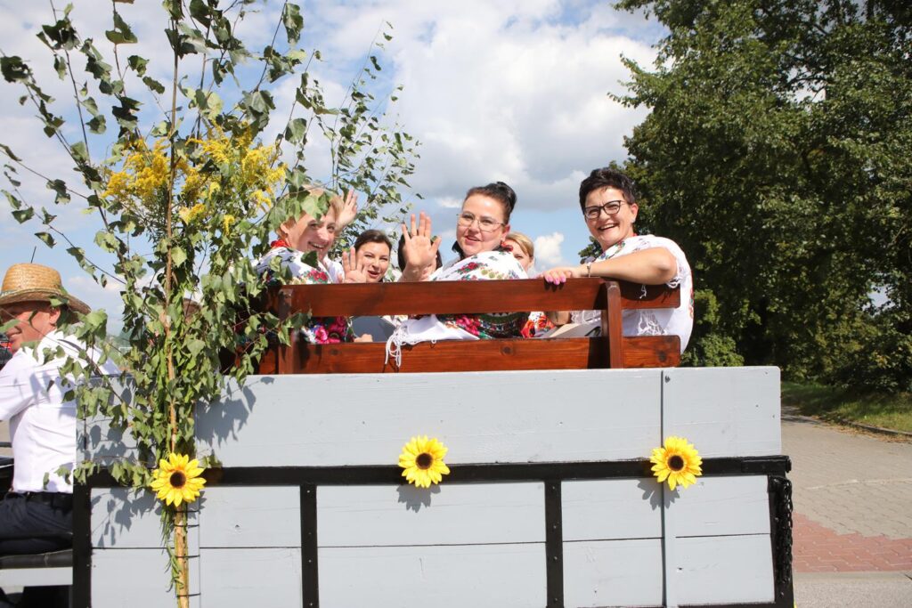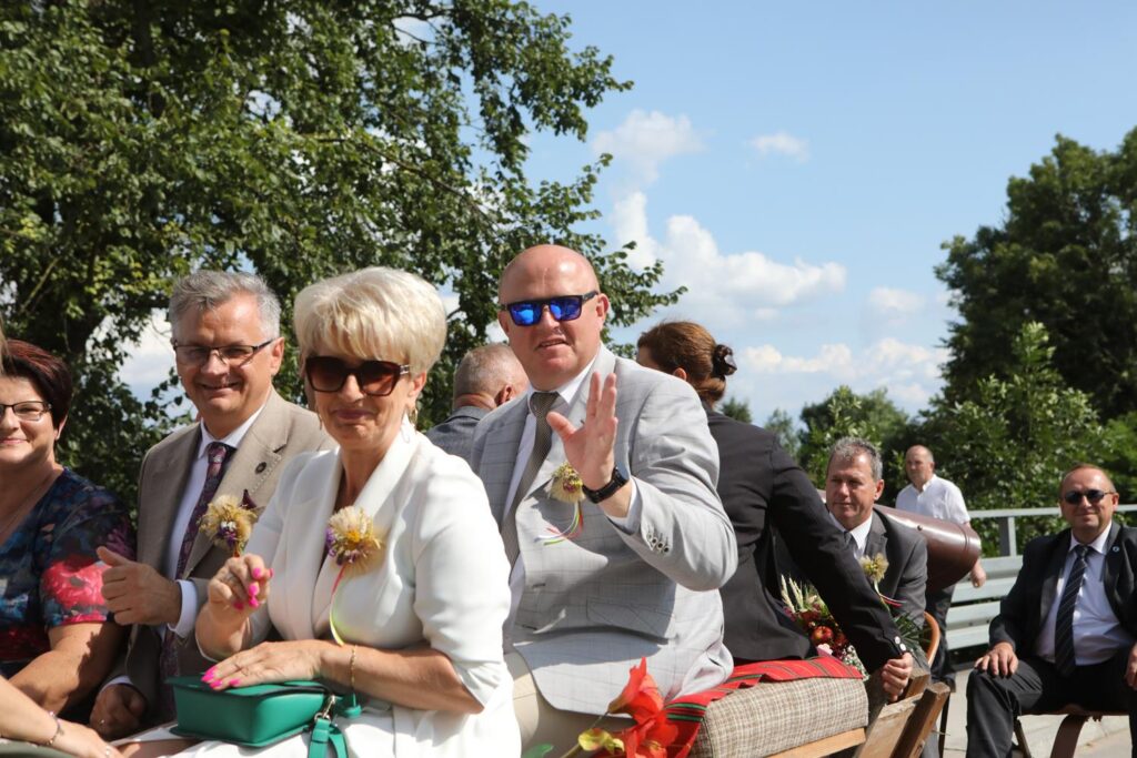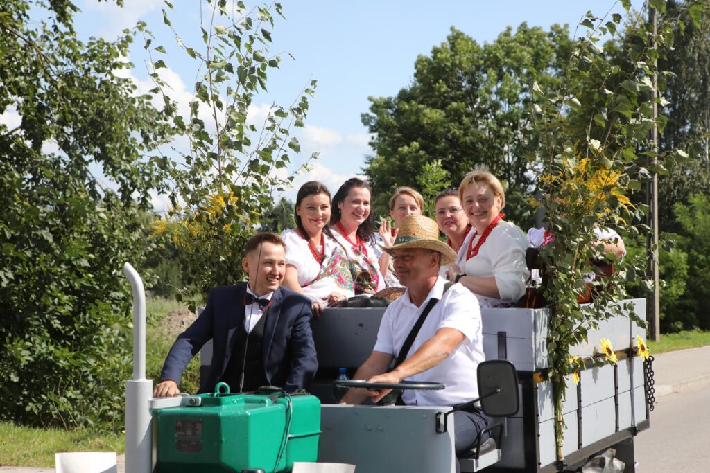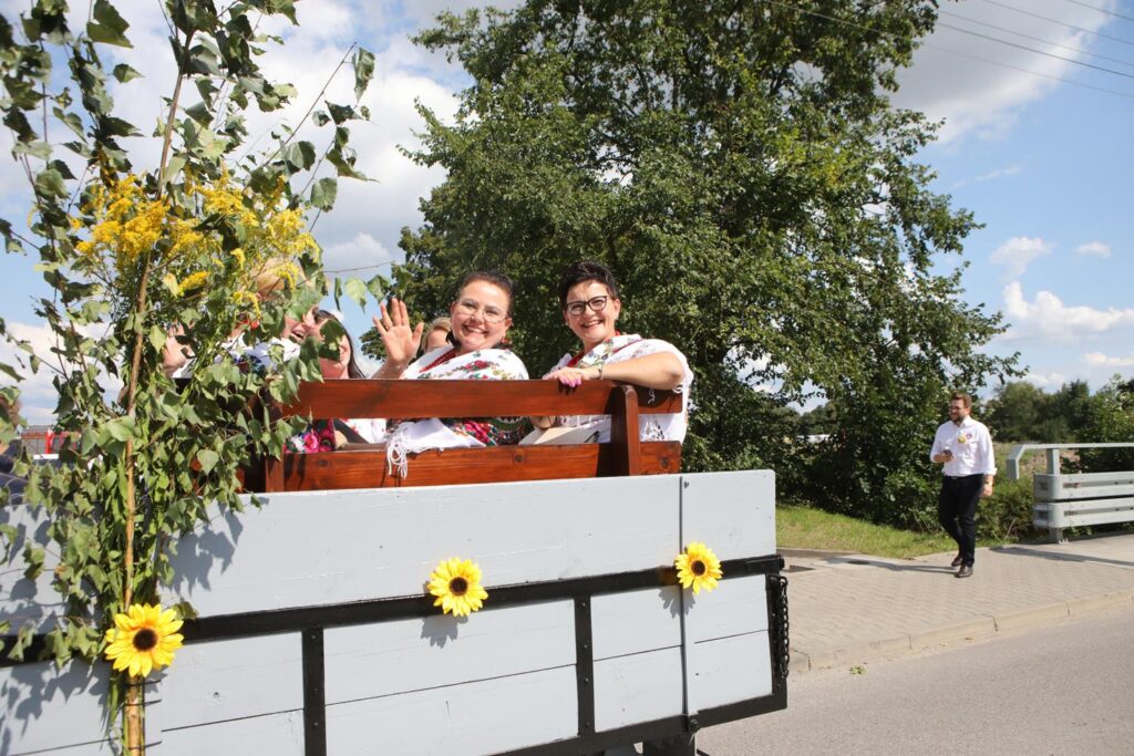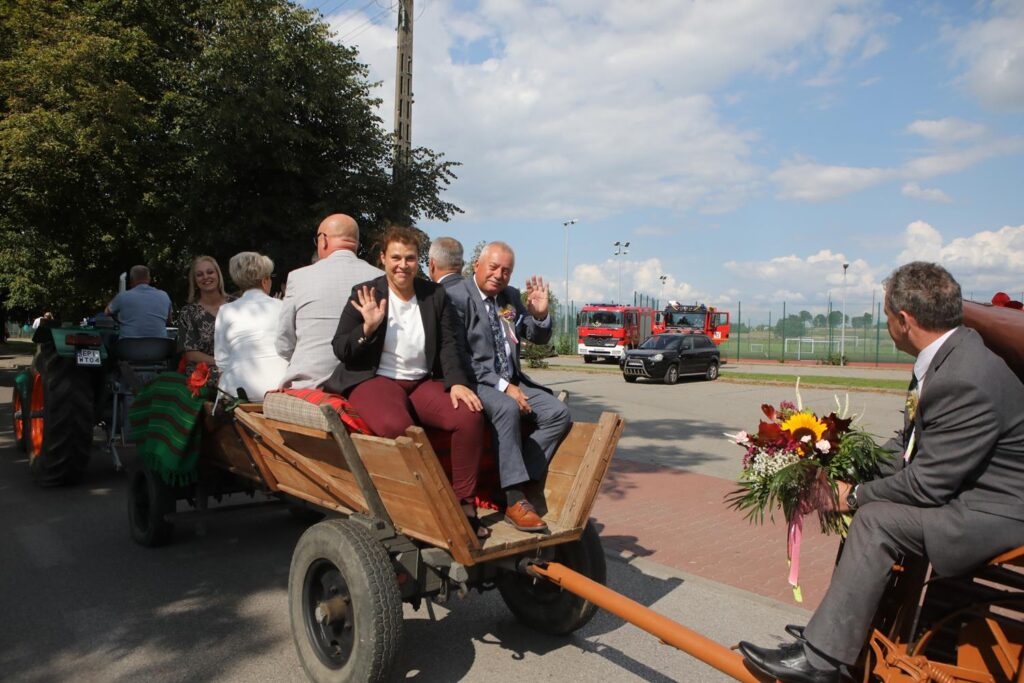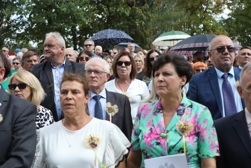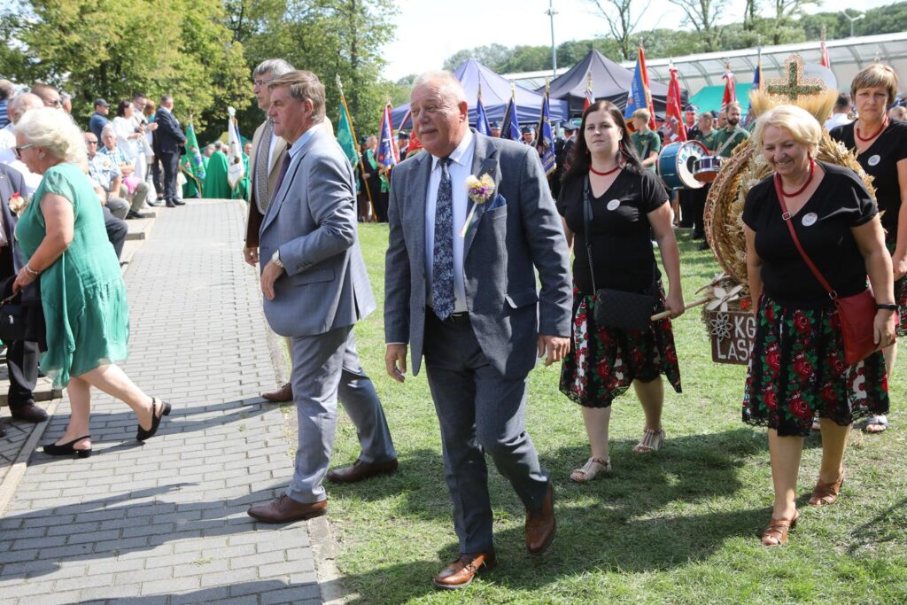 Na ceremoniał uczestnicy dotarli w korowodzie, z udziałem prawdziwych perełek, jakimi są dawne traktory, które rolnikom nadal służą w codziennej pracy. Wozami przyjechali goście i 13 delegacji wieńcowych, które prowadziła Młodzieżowa Orkiestra Dęta z Grabicy i liczne poczty sztandarowe.