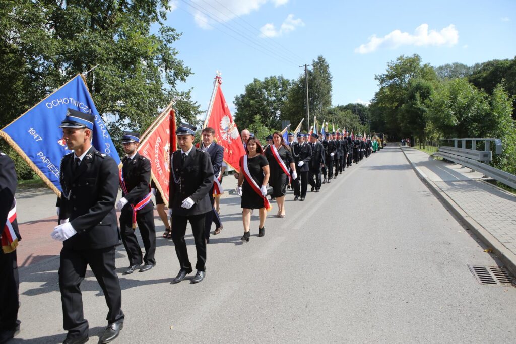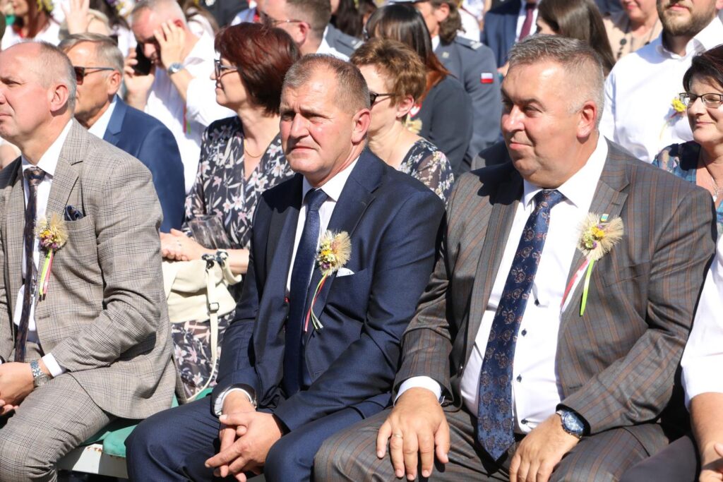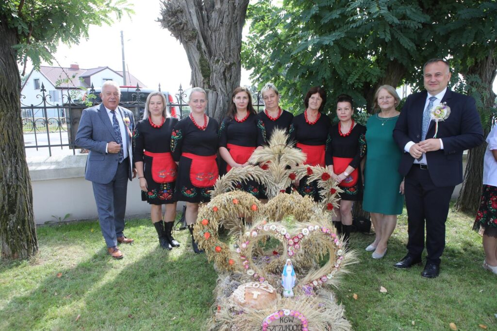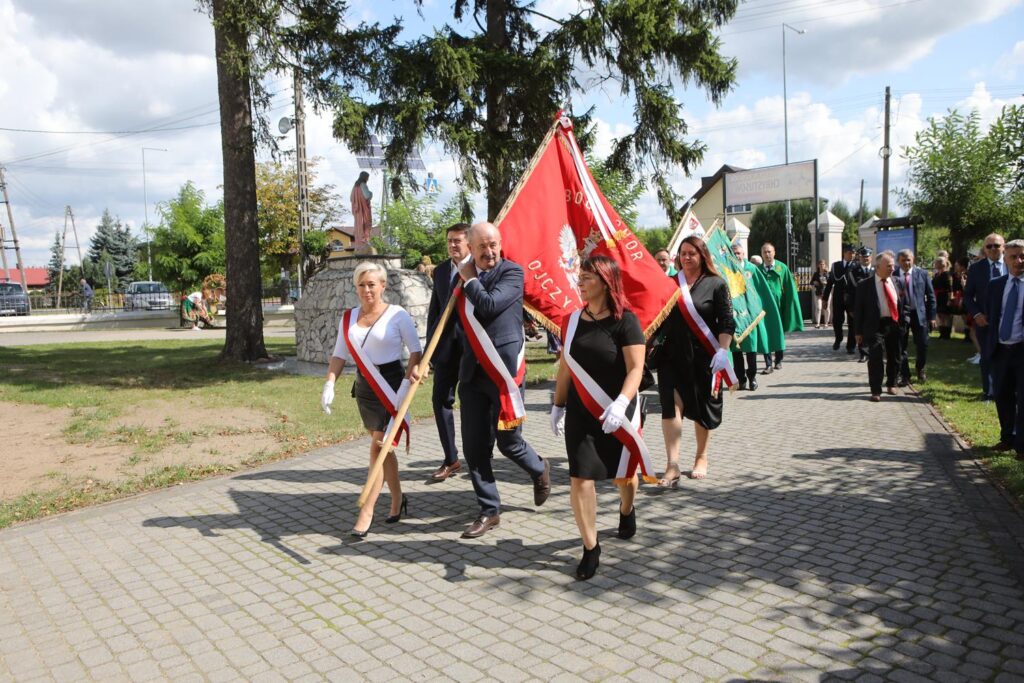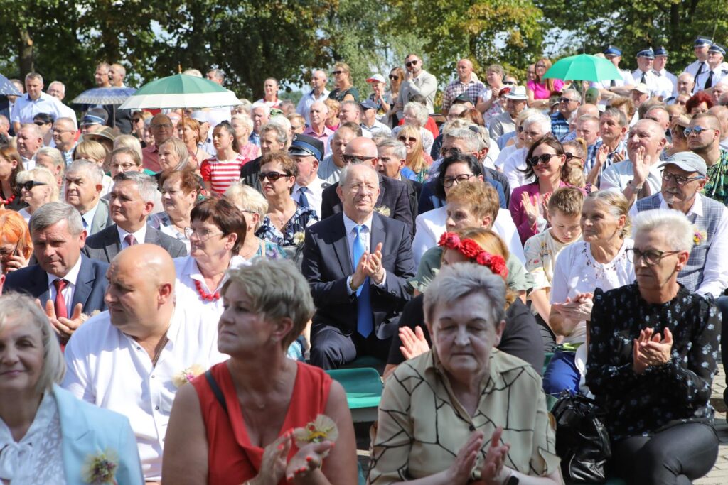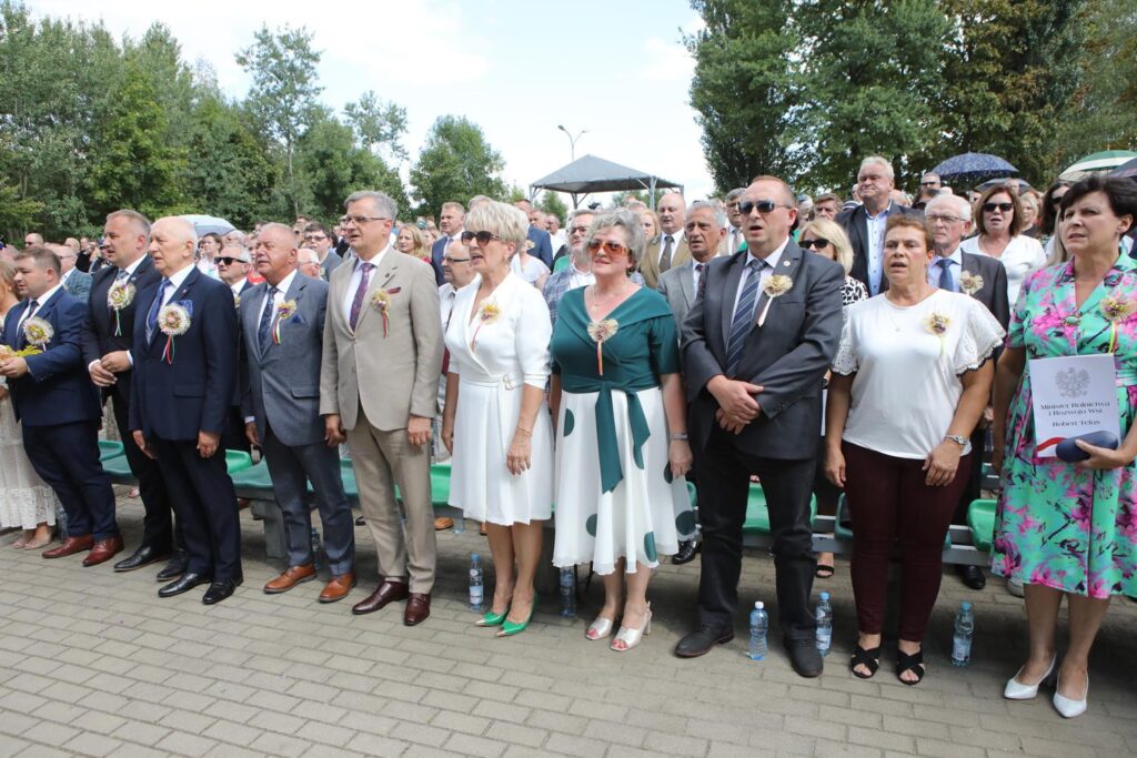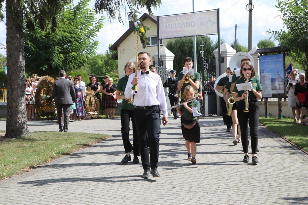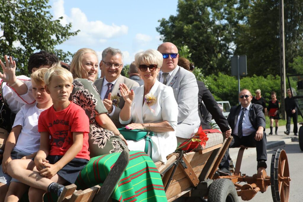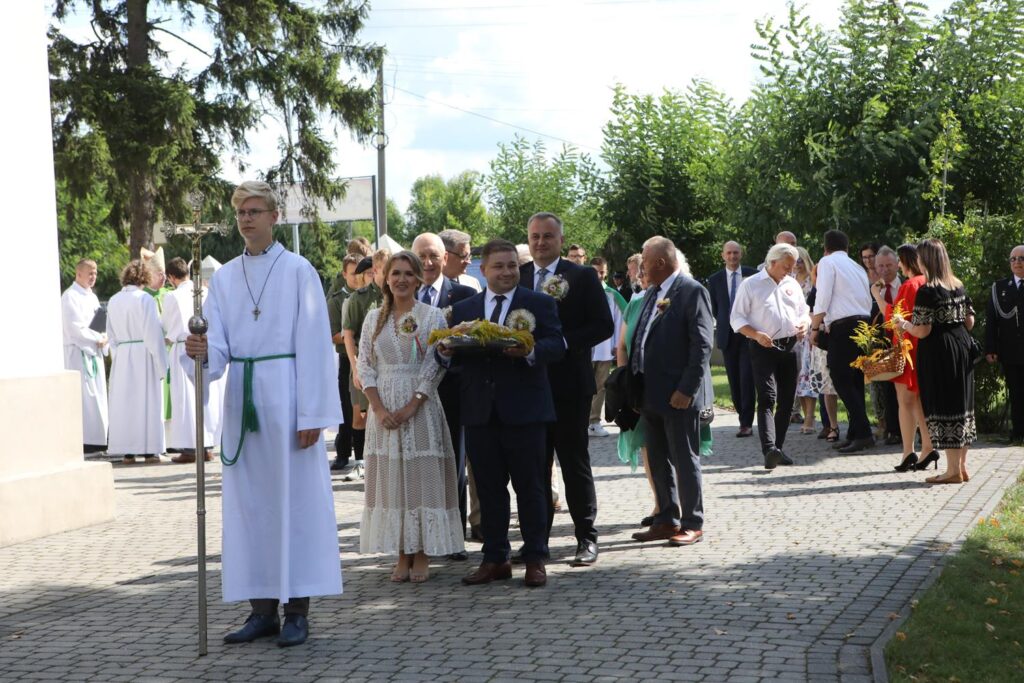 Na ceremoniał uczestnicy dotarli w korowodzie, z udziałem prawdziwych perełek, jakimi są dawne traktory, które rolnikom nadal służą w codziennej pracy. Wozami przyjechali goście i 13 delegacji wieńcowych, które prowadziła Młodzieżowa Orkiestra Dęta z Grabicy i liczne poczty sztandarowe.