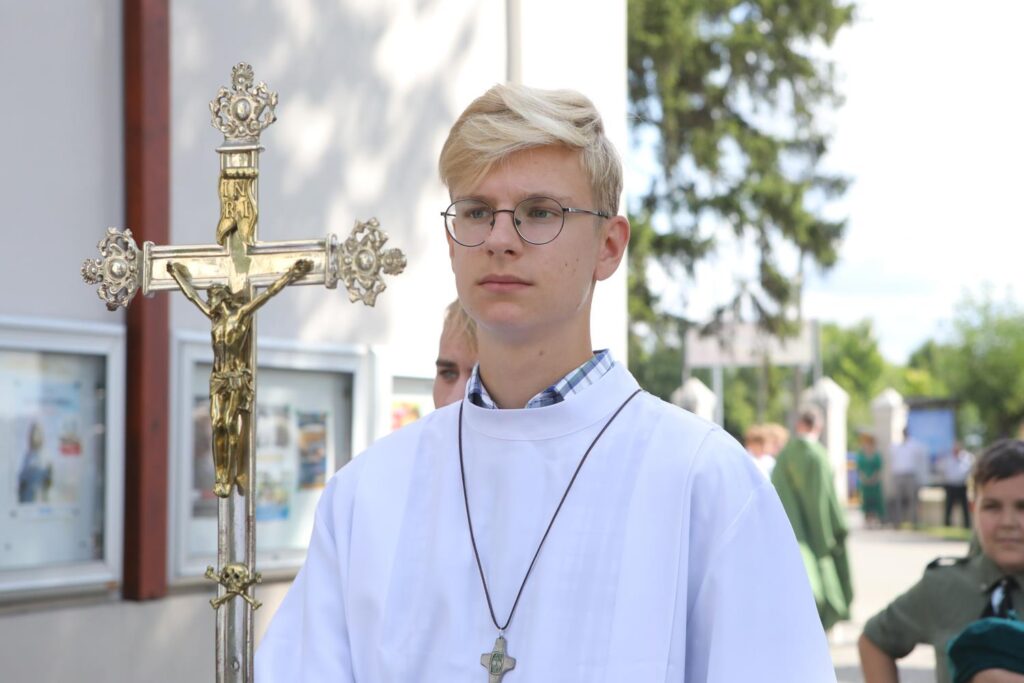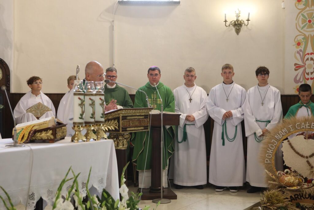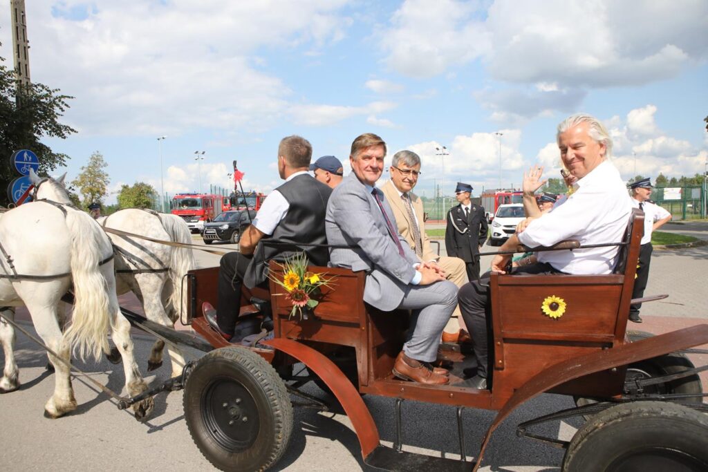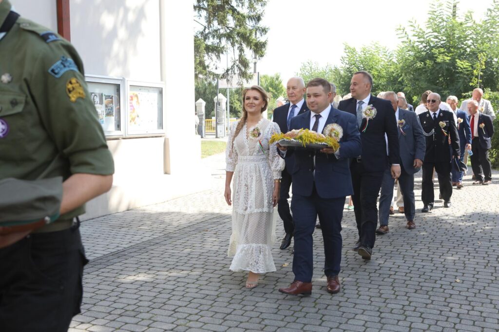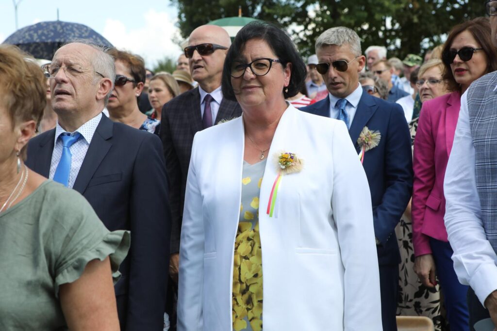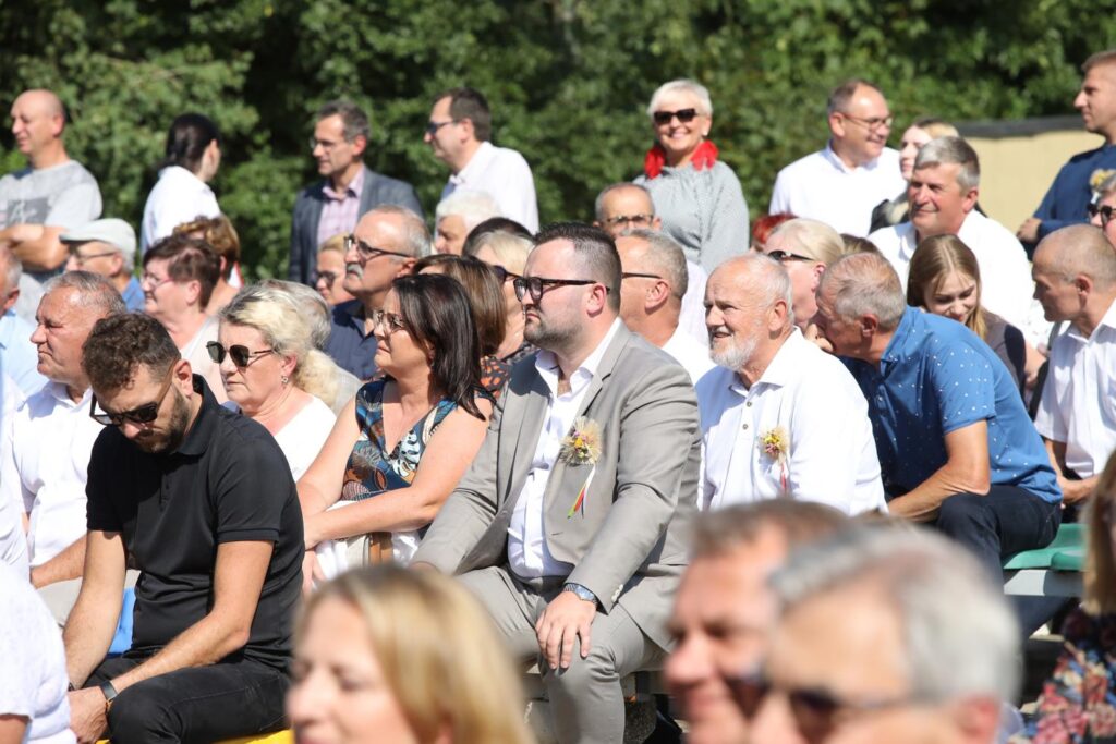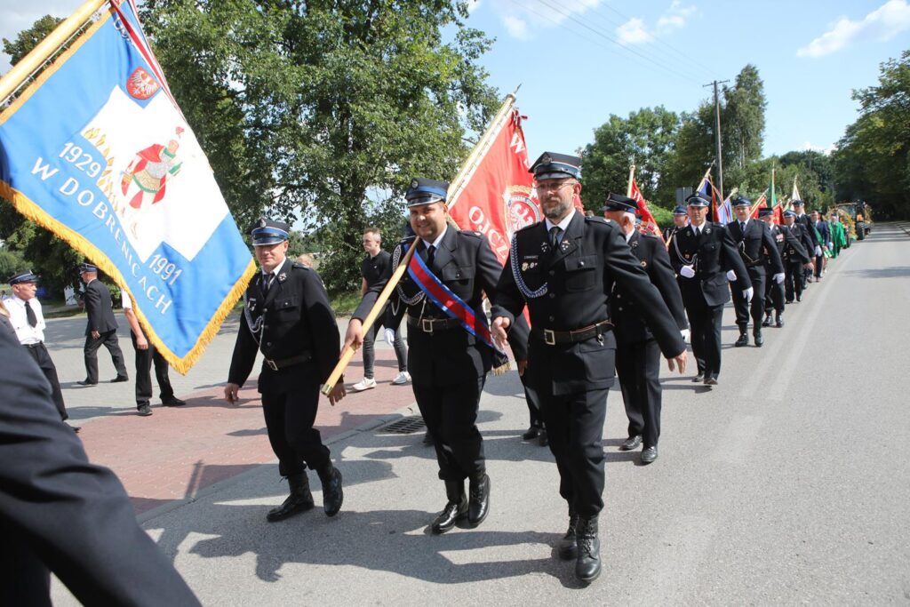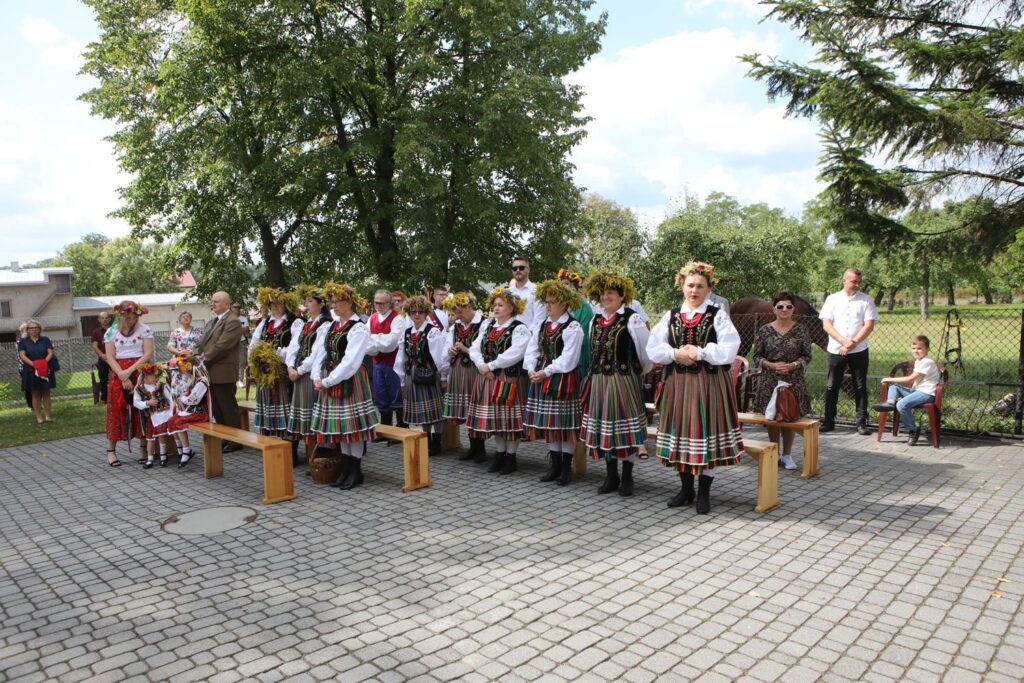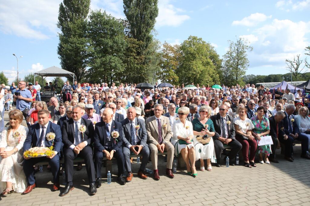 Na ceremoniał uczestnicy dotarli w korowodzie, z udziałem prawdziwych perełek, jakimi są dawne traktory, które rolnikom nadal służą w codziennej pracy. Wozami przyjechali goście i 13 delegacji wieńcowych, które prowadziła Młodzieżowa Orkiestra Dęta z Grabicy i liczne poczty sztandarowe.
