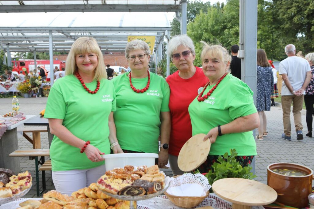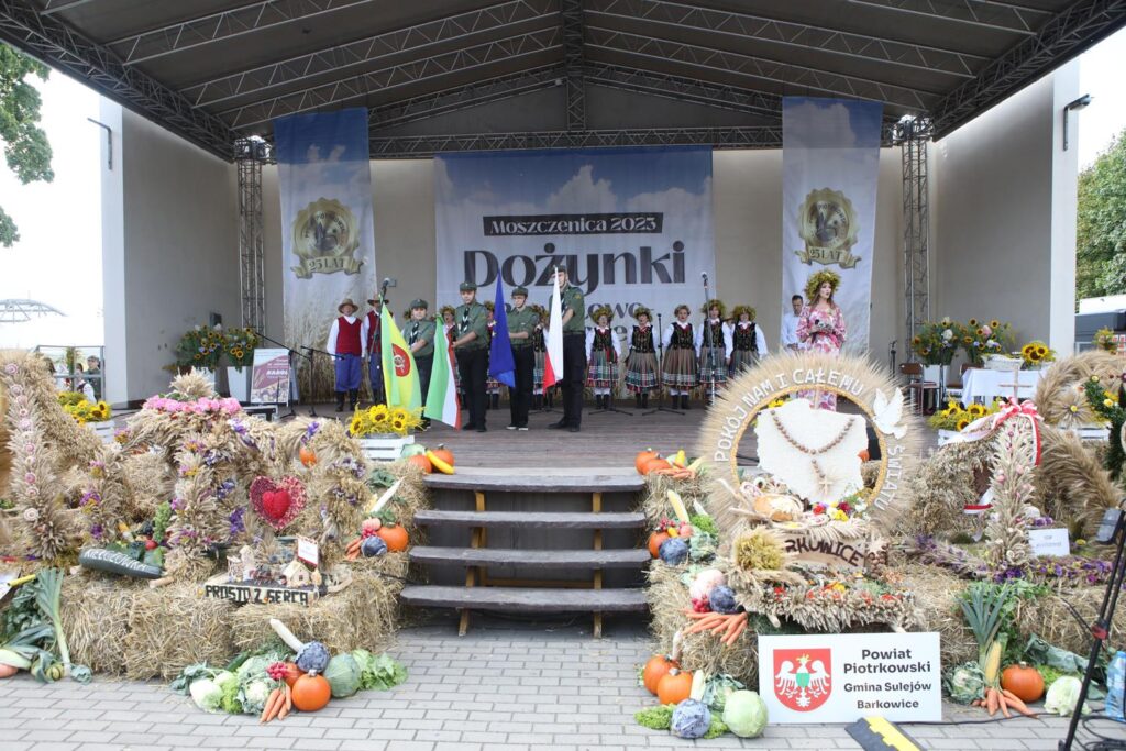 Aż 40 stoisk można było podziwiać na placu dożynkowym. Najliczniejszą grupą były Koła Gospodyń Wiejskich – KGW Komorniki z Gminy Wolbórz, KGW Glina z Gminy Wola Krzysztoporska, KGW Żądło z Gminy Grabica, KGW Niewierszyn – Babeczki z rodzynkiem z Gminy Aleksandrów, KGW Tomawa z Gminy Łęki Szlacheckie, KGW Straszów z Gminy Rozprza, KGW Stobnica z Gminy Ręczno i KGW Czarnocin, a także z terenu Gminy Moszczenica: KGW Białkowice, KGW Gajkowice, KGW Gazomia Nowa, KGW Jarosty, KGW Karlin, KGW Kiełczówka, KGW Kosów, KGW Korale z Moszczenicy, KGW Podolin, KGW Pomyków, KGW Raków Duży, KGW Rękoraj, KGW Srock, KGW Sierosław. Obok nich pysznościami kusili lokalni producenci marki „Powiat Piotrkowski – Prosto z serca”, Biuro Powiatowe ARMiR w Piotrkowie Tryb., Rada Powiatowa Izby Rolniczej Województwa Łódzkiego w Piotrkowie Trybunalskim, KRUS, PCPR w Piotrkowie Trybunalskim i Dom Pomocy Społecznej w Łochyńsku oraz szkół prowadzonych przez powiat w Bujnach, Czarnocinie, Sulejowie i Wolborzu.