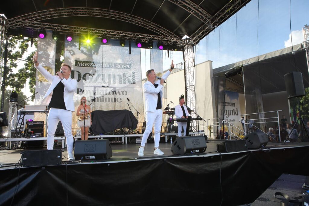 Jak na rolnicze święto plonów przystało na dożynkowej scenie wystąpiły ludowe zespoły: Koraliki z Czarnocina, Choberki z Grabicy, Zespół Ludowy Piotrkowianie, Ludowa Biesiada z Czarnocina, Zespół Ludowy Piliczanie, Kapela Tkacze z Moszczenicy i Kapela Tolka Gałązki. Prawdziwe tłumy przyciągnęły do Moszczenicy gwiazdy koncertu z okazji 25-lecia Powiatu Piotrkowskiego – Zespół MiG, Red Dance i BARANOVSKI, a dyskotekę dla uczestników dożynek poprowadził Zespół METIUS.(po)