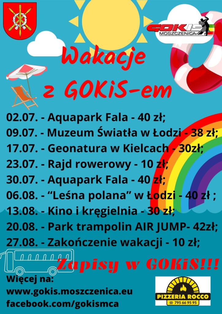 Warunkiem uczestnictwa jest dostarczenie wypełnionej „karty wyjazdu dziecka” do sekretariatu GOKiS oraz uiszczenie opłaty. Kartę można pobrać na naszej stronie internetowej. Więcej informacji w siedzibie GOKiS, ul. 100-lecia Odzyskania Niepodległości 2, Moszczenica lub pod nr tel. 44 616 94 54.