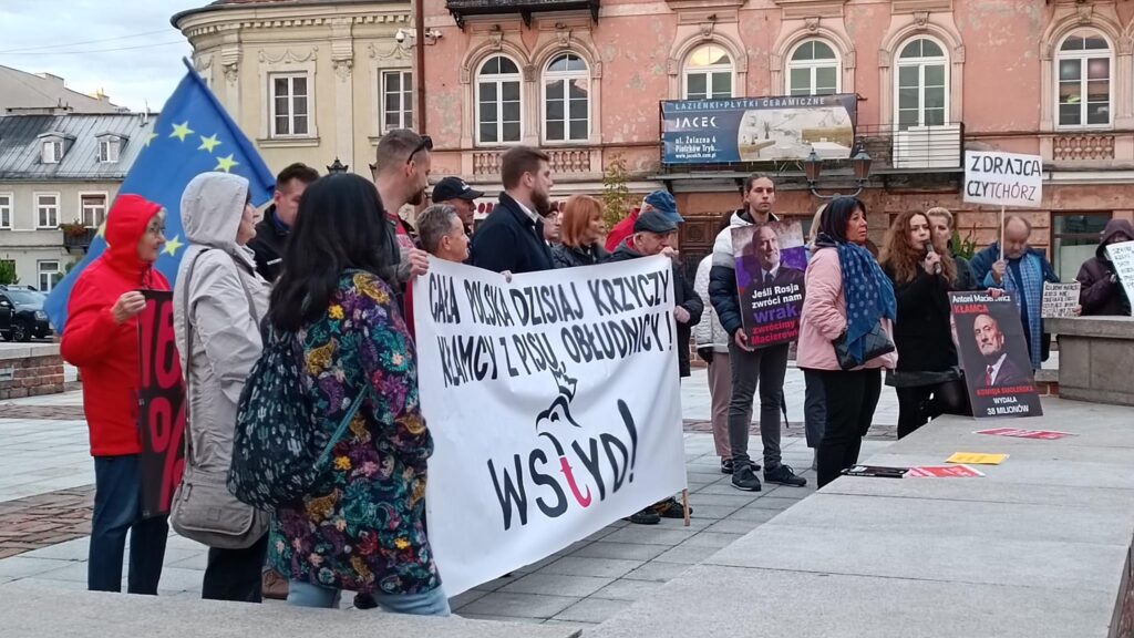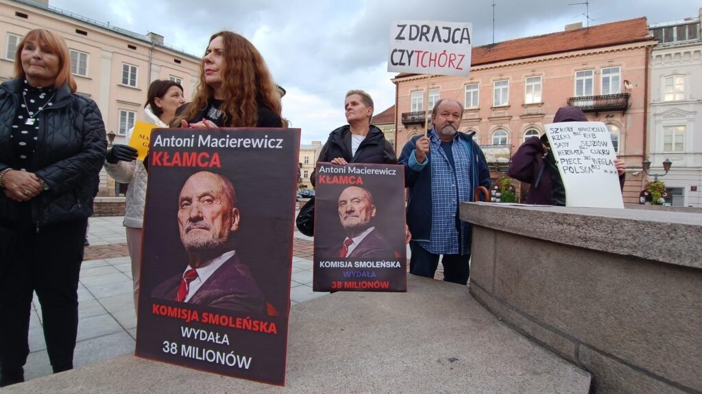 Kilkadziesiąt osób przybyło w czwartek (22.09) na starówkę, by wyrazić swój sprzeciw wobec działań Antoniego Macierewicza. Protest odbył się przed biurem poselskim Prawa i Sprawiedliwości. Protestujący wznosili między innymi okrzyki: „Cała Polska dzisiaj krzyczy: Kłamcy z PiSu, obłudnicy!” czy „Kłamstwo Macierewicza odbiera godność ofiarom”. Na miejscu oprócz protestujących, było aż 7 wozów policyjnych.