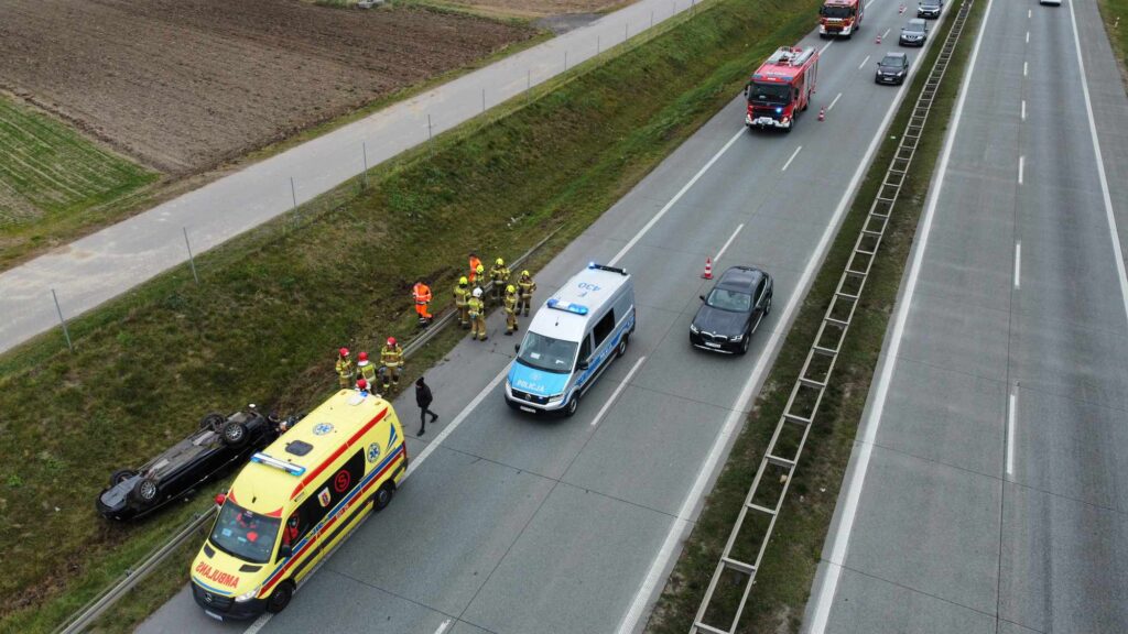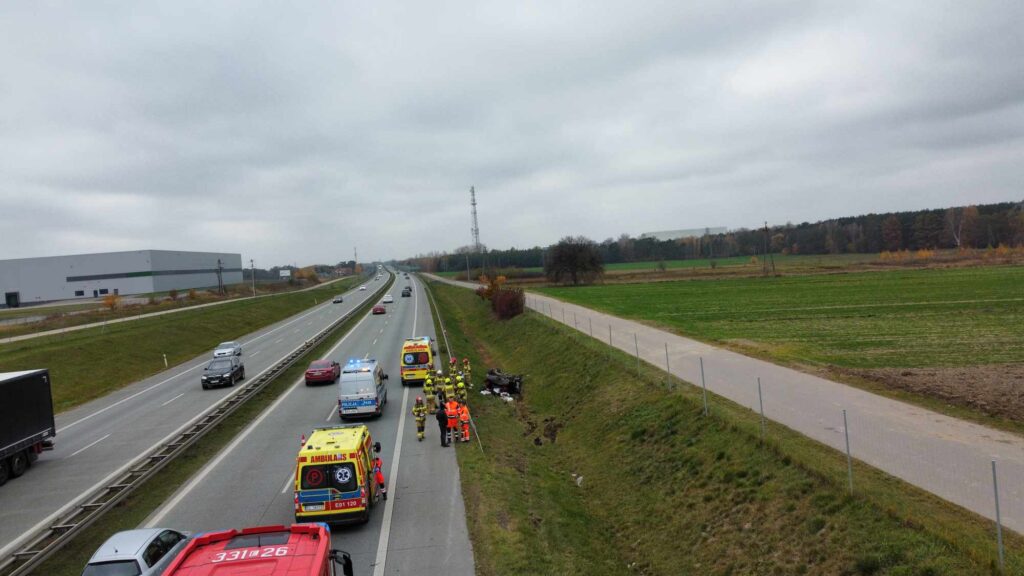 Zablokowany jest jeden z pasów „ósemki”. Ruch odbywa się tylko jedna nitką w kierunku Katowic, czyli autostrady A1. – Kierujący roverem podczas zmiany pasa ruchu utracił panowanie nad pojazdem, wypadł z drogi, a następnie dachował w rowie. W pojeździe podróżowały 4 osoby, z czego 2 w wyniku poniesionych obrażeń zostały przewiezione do szpitala – informują policjanci.