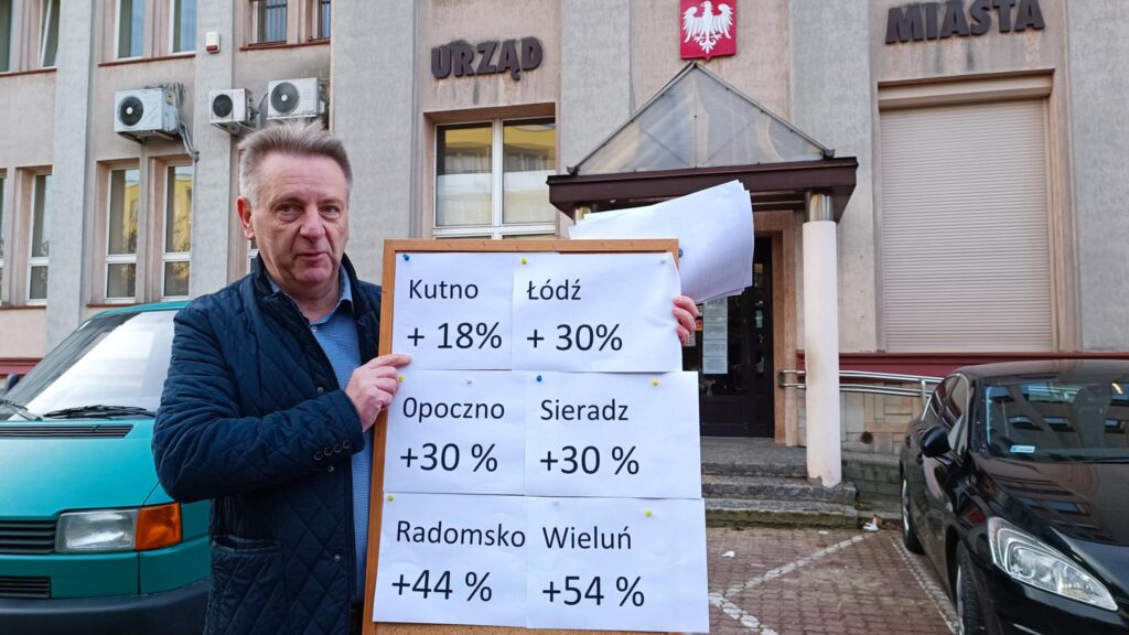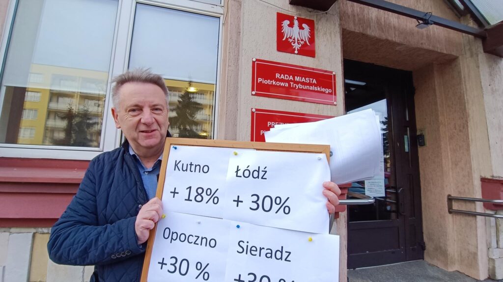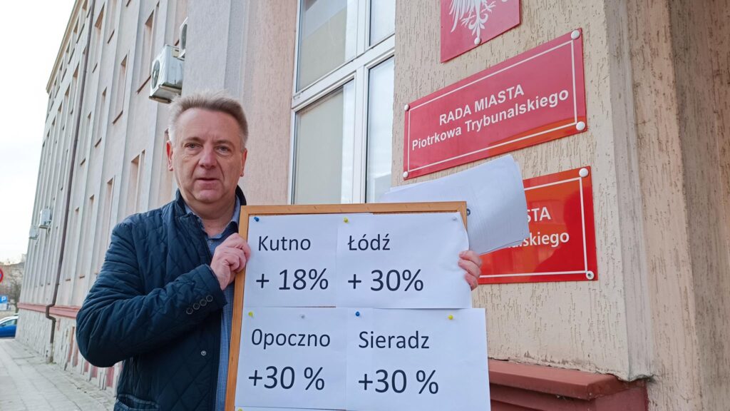 – Uzasadnieniem konieczności ponownego przeliczenia cen za dostawę ciepła są m.in. znacznie niższe podwyżki opłat w innych samorządach naszego regionu. Stowarzyszenie Inicjatywa Piotrkowska 22 zadaje publicznie pytanie prezydentowi miasta: Dlaczego różnica cen jest taka duża porównując Piotrków Trybunalski do innych miast funkcjonujących w tym samym województwie, z czego to wynika? – dopytywał podczas wtorkowego spotkania z dziennikarzami Jacek Sokalski, jeden z liderów stowarzyszenia. – Z informacji uzyskanych telefonicznie udało się ustalić, że podwyżki cen w (przybliżeniu) w innych samorządach naszego regionu wynosiły odpowiednio: w Sieradzu o 30%, Opocznie o 30%, Bełchatowie 30%, Łodzi 30%, Radomsku 44%, Wieluniu 54%, Kutnie 18,7% a Piotrkowie Trybunalskim blisko 100% – mówił Sokalski.