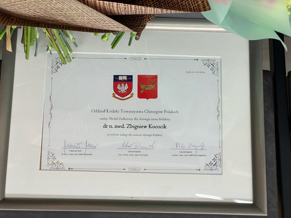 Wybitny chirurg, dr n. med. Zbigniew Kococik, związany z Samodzielnym Szpitalem Wojewódzkim im. Mikołaja Kopernika w Piotrkowie Trybunalskim, otrzymał prestiżowy medal „Zasłużony dla chirurgii ziemi łódzkiej”.