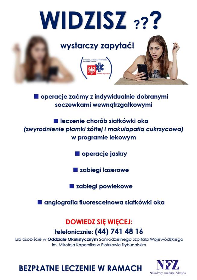 Zapraszamy na „Dzień Otwarty Oddziału Okulistycznego” SSW im. Kopernika w Piotrkowie Trybunalskim.