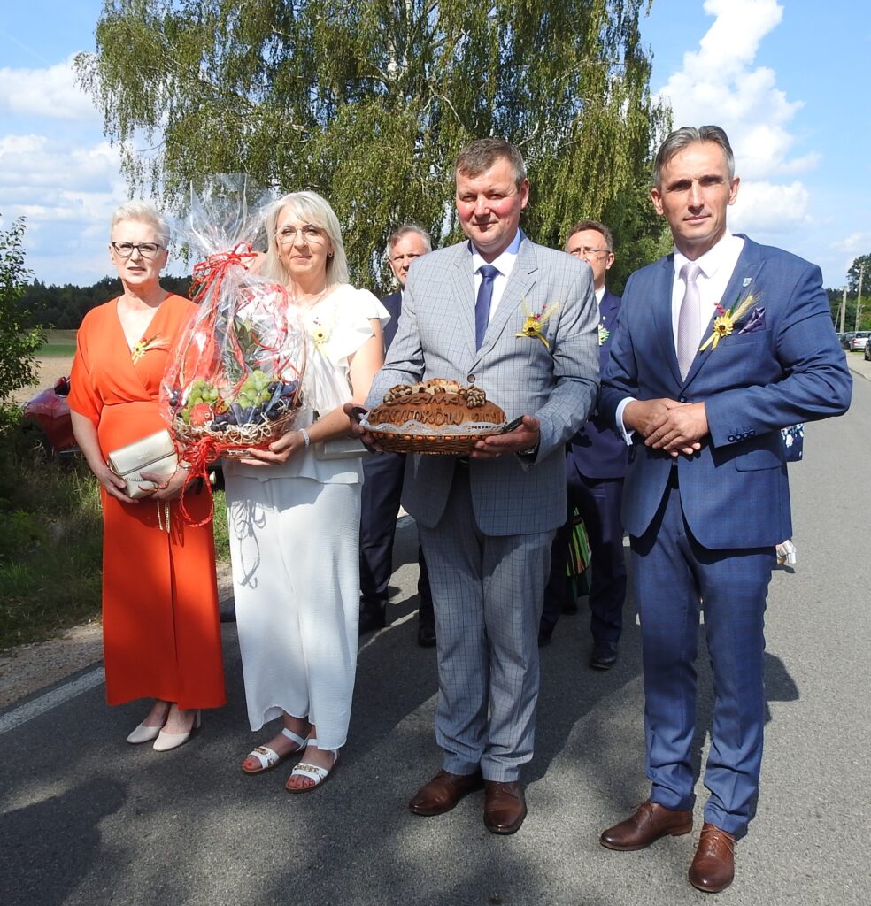 Podczas otwarcia uroczystości dożynkowej, którego dokonała Anna Piekarz – Dyrektor Gminnego Centrum Kultury, starostowie przekazali wójtowi gminy bochen chleba, który został podzielony wśród uczestników święta plonów.