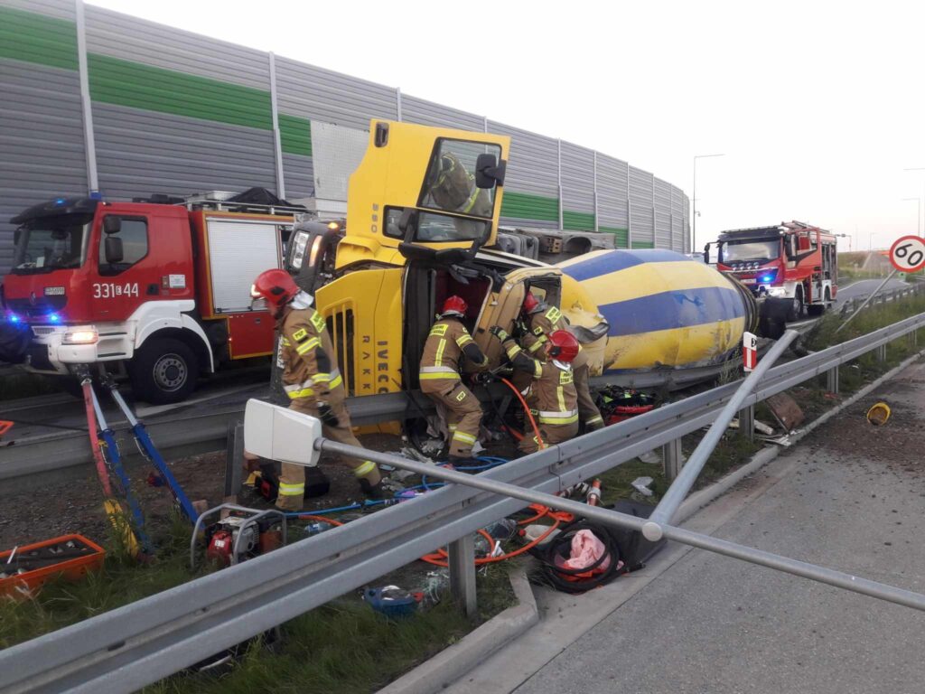 – Przed godziną 4:30 dyżurny piotrkowskiej jednostki otrzymał zgłoszenie o zdarzeniu drogowym na wjeździe na A1 z kierunku Piotrkowa Trybunalskiego a także od strony Bełchatowa. Ze wstępnych ustaleń policjantów pracujących na miejscu wynika, że kierowca jadąc wypełnioną betoniarką, na łuku drogi nie dostosował prędkości do przewożonego ciężaru, w wyniku czego, doprowadził do przewrócenia pojazdu. 22-letni kierujący został przewieziony do szpitala. – relacjonuje asp. szt. Izabela Gajewska z Komendy Miejskiej Policji w Piotrkowie Trybunalskim.