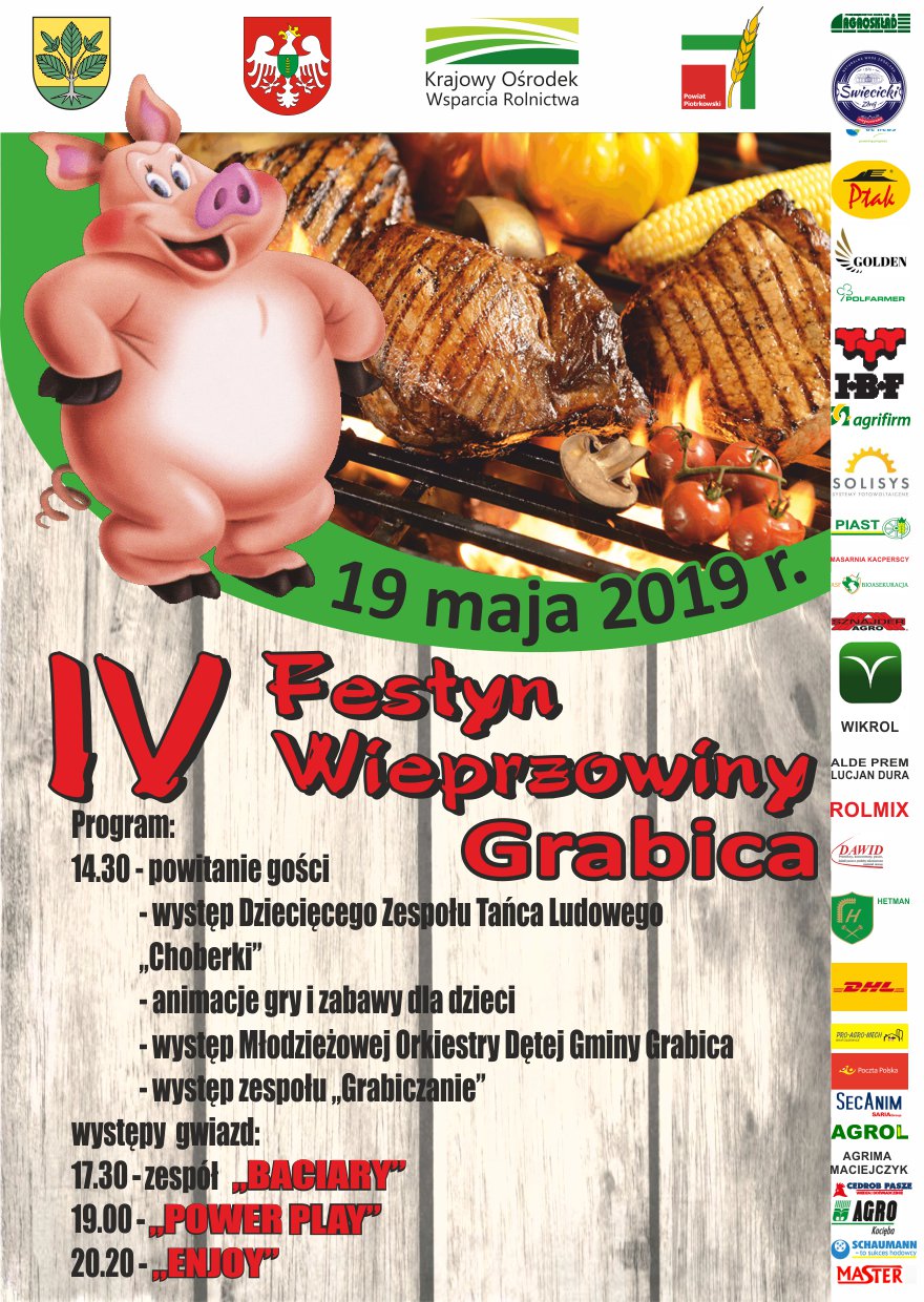 – To już kolejna edycja najsmaczniejszej imprezy w całym regionie, czyli IV Festyn Wieprzowiny Grabica 2019. Impreza ta na stałe wpisała się w tradycję naszej gminy. W tym roku termin wydarzenia przypada na niedzielę 19 maja – mówi Krzysztof Kuliński, wójt gminy Grabica.