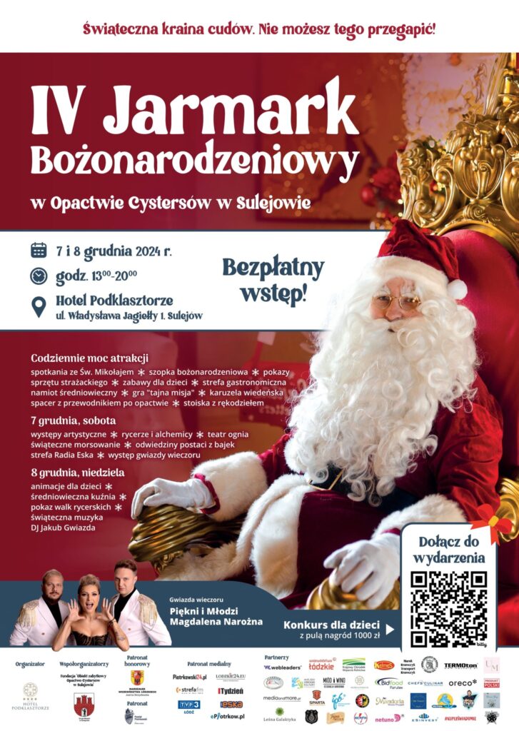 Hotel Podklasztorze oraz miasto i gmina Sulejów zapraszają na IV Jarmark Bożonarodzeniowy – „Świąteczna kraina cudów w Hotelu Podklasztorze” To jeden z najlepszych Jarmarków Bożonarodzeniowych w Województwie Łódzkim!