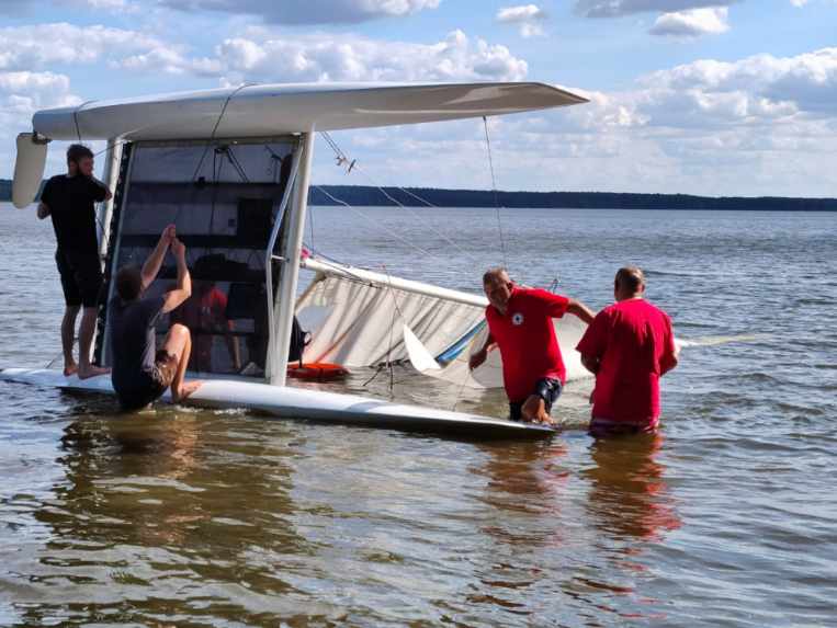 Do wywrócenia się łódki doszło w niedzielę (17.07) w okolicach Swolszewic Dużych po godzinie 15:00. – Zgłoszenie od dyspozytora CPR w Łodzi otrzymaliśmy około 15:30. Natychmiast udaliśmy się we wskazaną lokalizację. Informacja potwierdziła się. Na miejscu zastaliśmy wywrócony katamaran i dwie osoby załogi. Nie udało się na wodzie podnieść łodzi, dlatego odholowaliśmy ją do brzegu. Na szczęście nikomu nic się nie stało. – relacjonuje Janusz Ciechanowski ratownik Rejonowego WOPR w Piotrkowie Trybunalskim.