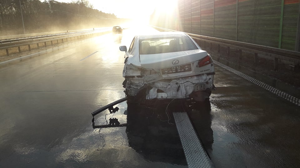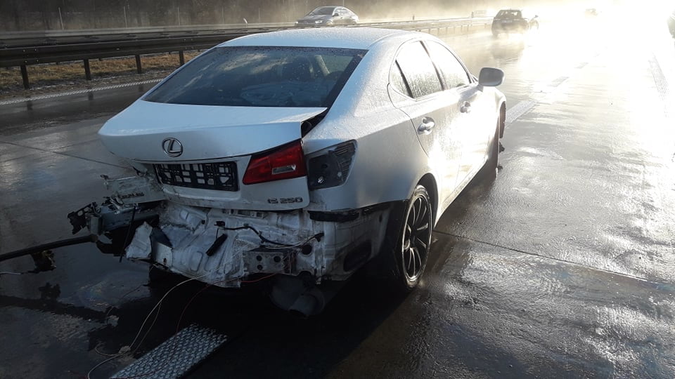 W sobotę kilka minut do godzinie 15. na trasie S8 na wysokości Proszenia. doszło do kolizji. Młody kierowca prawdopodobnie przecenił swoje umiejętności, nie docenił mocy silnika, i na mokrej nawierzchni wpadł w poślizg, rozbijając swojego lexusa o bariery energochłonne.