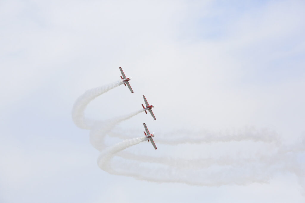 – Są u nas tradycyjnie piloci akrobacyjni z grupy ORLEN Żelazny oraz piloci ze Słowacji, którzy zaprezentują bitwę powietrzną. Będą też samoloty odrzutowe Polskich Sił Powietrznych FA 50, także warto nas odwiedzić jeszcze w jutro, czyli w niedzielę. Na płycie lotniska na całe rodziny czekać będzie także wesołe miasteczko i mnóstwo foodtrucków oraz stoisk z gadżetami i lotniczymi zabawkami – dodał Marcin Pampuch.