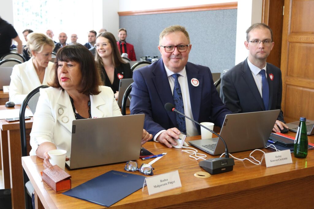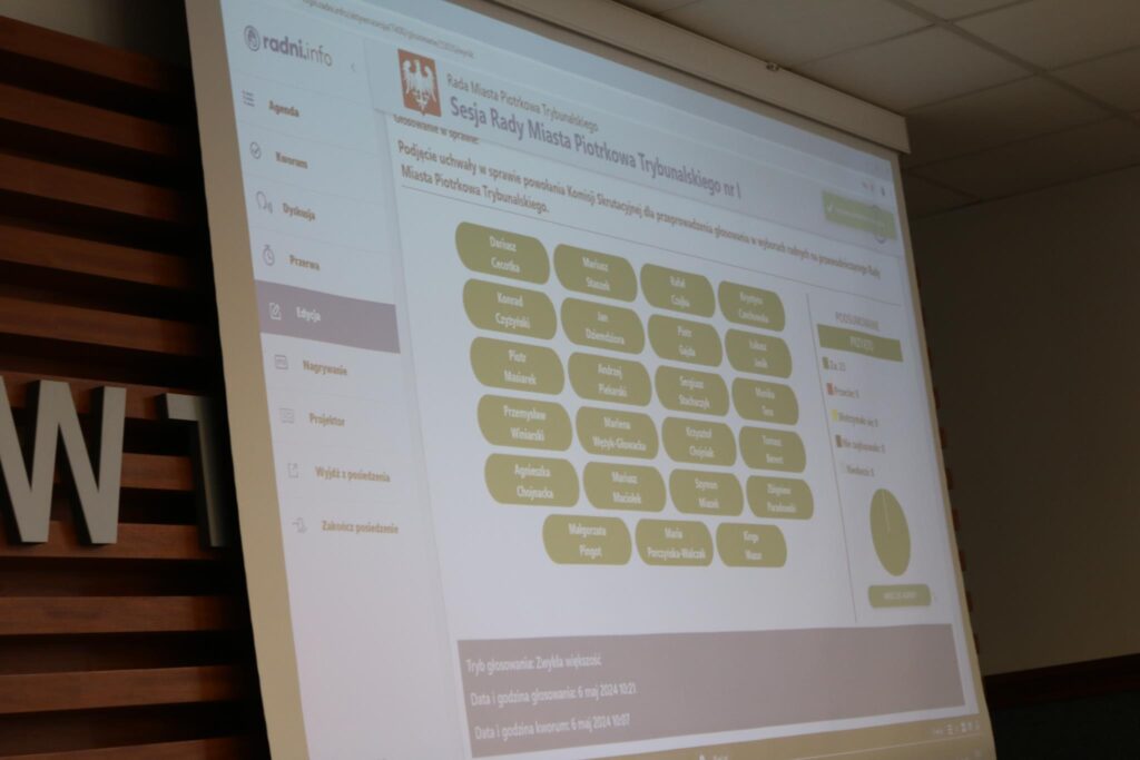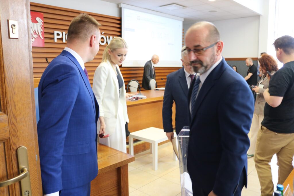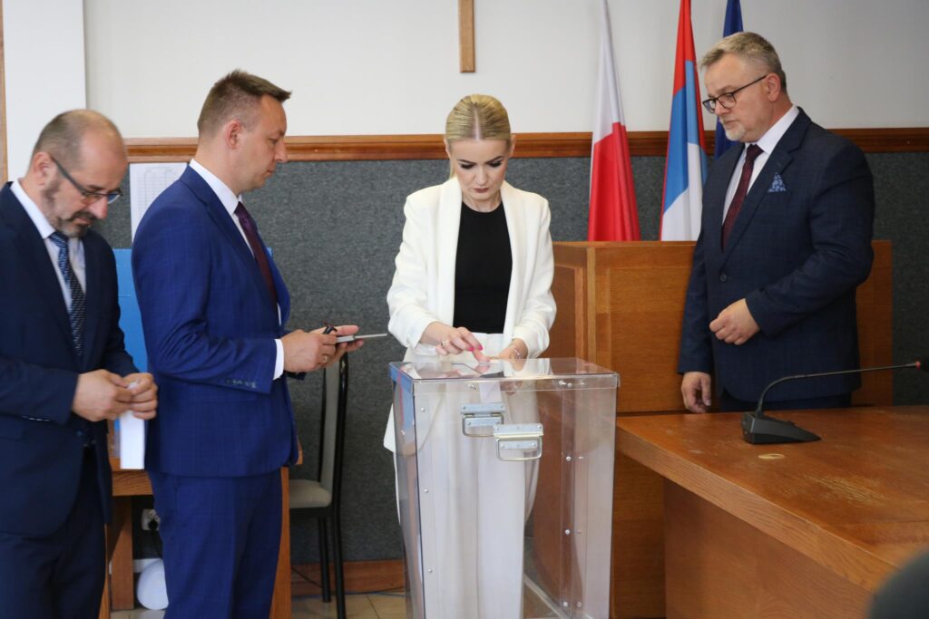 Radni podczas pierwszej sesji wybrali przewodniczącego. Został nim Mariusz Staszek. Za jego wyborem głosowało radnych 17, przeciw było 6 osób. Ponadto radni wybrali trzech wiceprzewodniczących. Zostali nimi: Mariusz Maciołek, Konrad Czyżyński i Andrzej Piekarski. Radni zgłosili także Rafała Czajkę, jednak nie uzyskał on wymaganej liczby głosów.