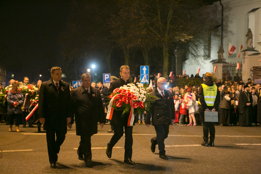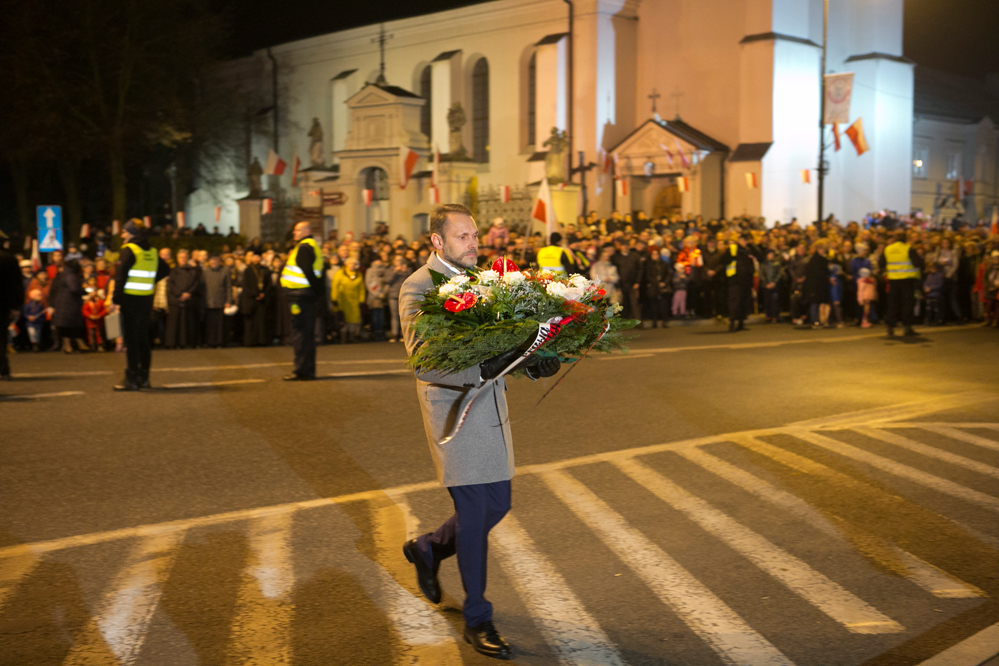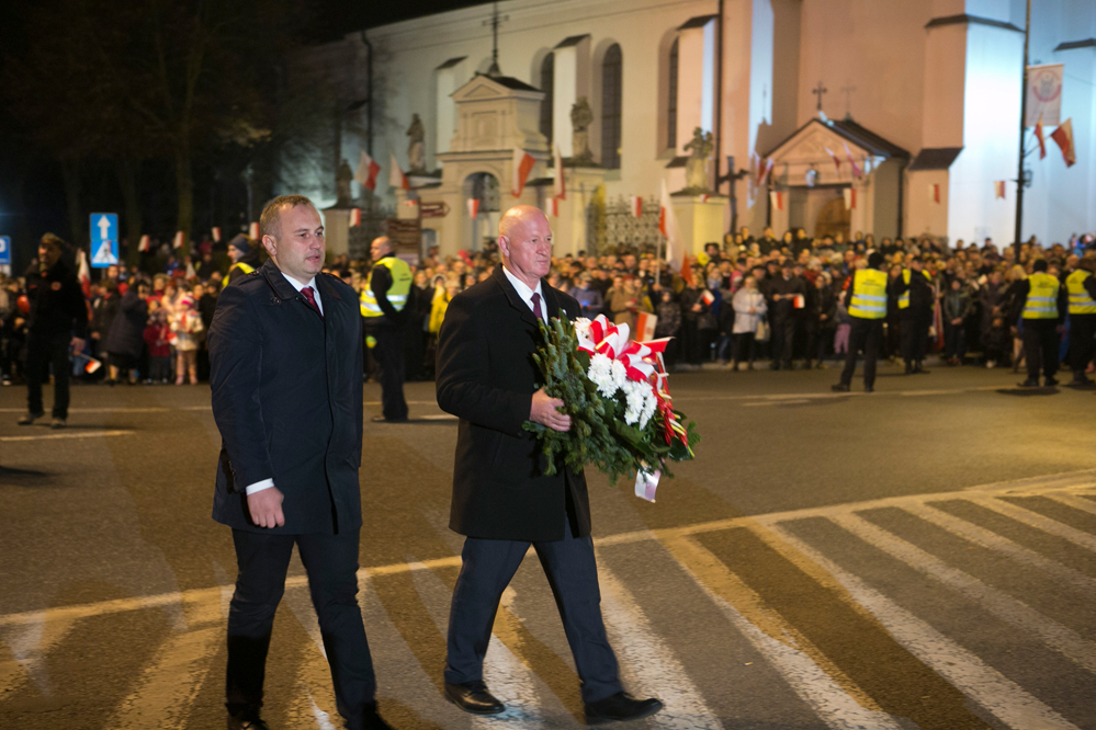 Piotrkowskie obchody Święta Niepodległości rozpoczęła msza święta za Ojczyznę odprawiana tradycyjnie w kościele oo. Bernardynów. Po niej, przed pomnikiem Grobu Nieznanego Żołnierza, prezydent miasta Krzysztof Chojniak wygłosił okolicznościowe przemówienie, w którym mówił o niepodległościowych i legionowych tradycjach naszego miasta. – Nie byłoby wolnej Ojczyzny bez walki, bez ran i krwi zwykłego żołnierza. W tej walce swój znaczący udział miało także nasze miasto. Piotrków stał się bowiem bazą ważnych instytucji niepodległościowych – mówił prezydent i podkreślił. – Niech zawsze na dźwięk słowa Polska, nasze serca biją w jednym rytmie, a drogi którymi podążamy, nawet jeśli będą różne, niech prowadzą do tego samego celu – pomyślności Rzeczypospolitej. Tej pomyślności z okazji dzisiejszego święta państwu życzę. Wszystkiego najlepszego! Dla Polski! Dla Polaków!