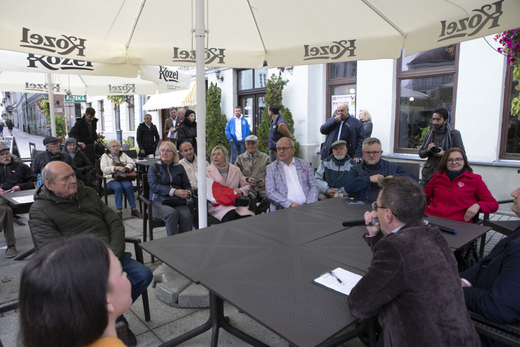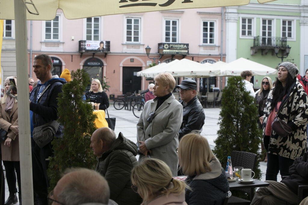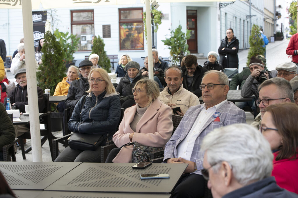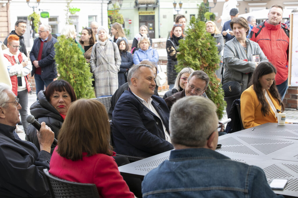 Pomimo chłodu, na Rynku Trybunalskim zgromadziła się spora grupka osób. Mieszkańcy, zadawali kandydatom pytania dotyczące oceny 20-letniej prezydentury Krzysztofa Chojniaka, swoich zasług na rzecz rozwoju miasta, obronności kraju, czy rozdziału państwa od kościoła oraz aborcji i praw kobiet. Jeden z mieszkańców dopytywał także, dlaczego na spotkanie nie zaproszono kandydatów Konfederacji i PiS.