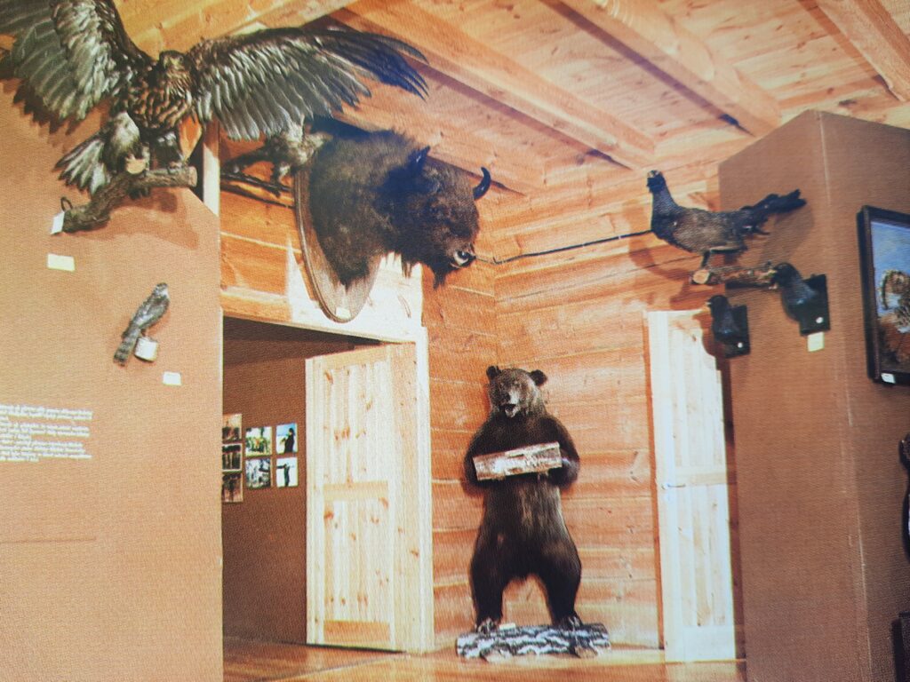 Co mógł zobaczyć odwiedzający piotrkowskie Muzeum Łowiecko-Przyrodnicze? Ekspozycja składała się z wystaw stałych i czasowych. Przez osiem lat istnienia na Wierzejach prezentowano zbiory własne, jak i wypożyczone. Na te pierwsze składały się głównie darowizny od mieszkańców miasta, jak i województwa. Te drugie pochodziły z muzeów w Łodzi, Kielcach, Częstochowie, Bytomiu i Warszawie. Na 500 metrach kwadratowych ekspozycje prezentowano w czterech salach. W pierwszej królowało „Łowiectwo na ziemiach polskich”. Przedstawiano tutaj historię łowiectwa i ochrony przyrody od czasów najdawniejszych do współczesności. Tworzyły ją szczątki zwierząt kopalnych, naczynia zdobione motywami łowieckimi, broń myśliwska w postaci krzemiennych i żelaznych grotów. Nie zabrakło na ekspozycji kła i zęba trzonowego mamuta, znalezionych podczas prac odkrywkowych w Kopalni Węgla Brunatnego „Bełchatów”. Druga sala była poświęcona ochronie środowiska. Wystawa „Techniczne i krajobrazowe środki ochrony środowiska”, była pierwszą, jaką pokazano w tej części muzeum. Zebrane i opracowane plansze, fotografie i modele przedstawiały stan i skalę zniszczeń w środowisku oraz sposoby jego ochrony. Na stałe z czasem zastąpiła ją ekspozycja stała, zatytułowana „Ochrona środowiska w województwie piotrkowskim”. Podnosiła ona dość istotny problem wpływu na lokalne środowisko ingerencji w naturalny układ hydrologiczny i wpływu na stan powietrza atmosferycznego budowy zespołu górniczo-energetycznego „Bełchatów”. Co warto dodać w ogóle ekspozycja poświęcona ochronie środowiska w chwili otworzenia muzeum dla zwiedzających nie miała swojego odpowiednika wśród placówek muzealnych w całym kraju. W trzeciej sali stały wypreparowane zwierzęta łowne występujące w lasach województwa piotrkowskiego, całości dopełniały wieńce jeleni, parostki saren, oręże dzików i inne trofea myśliwskie. Z kolei czwartą salę przeznaczono na prezentację wystaw czasowych. Pierwszą jaką tu zainstalowano była ekspozycja 130 fotografii, które brały udział w międzynarodowym konkursie fotografiki łowieckiej w Sofii w 1978 roku. Wśród nich znalazła się zwycięska praca Polaka, Leszka Sawickiego, przedstawiająca uchwycony w locie klucz żurawi.