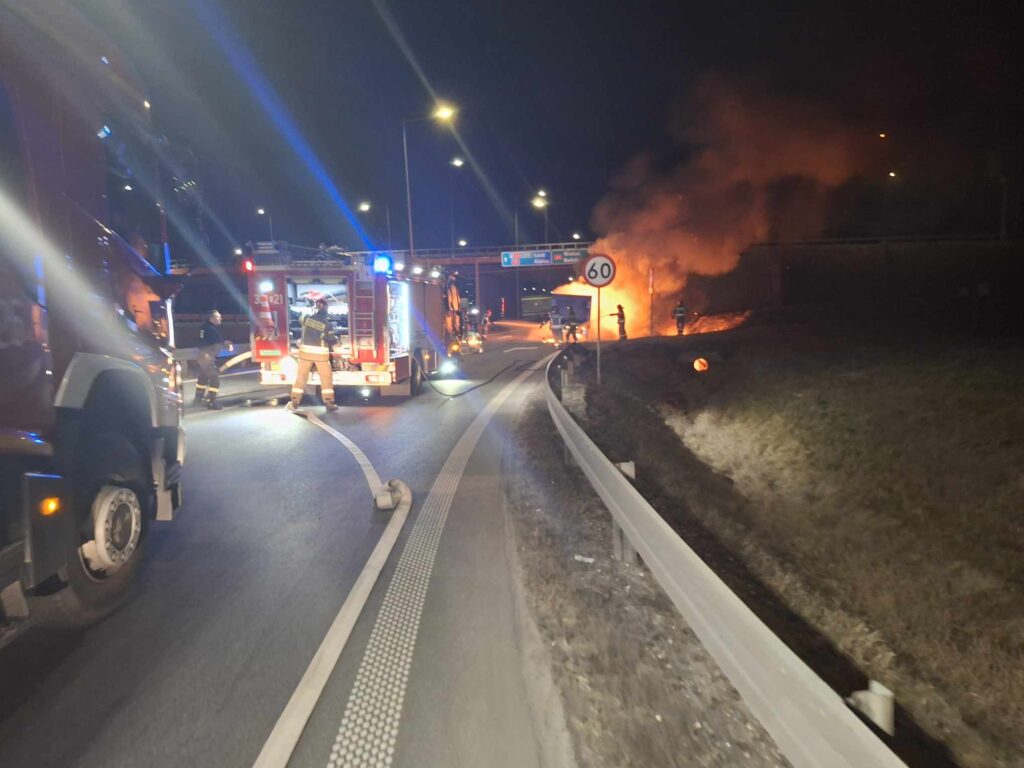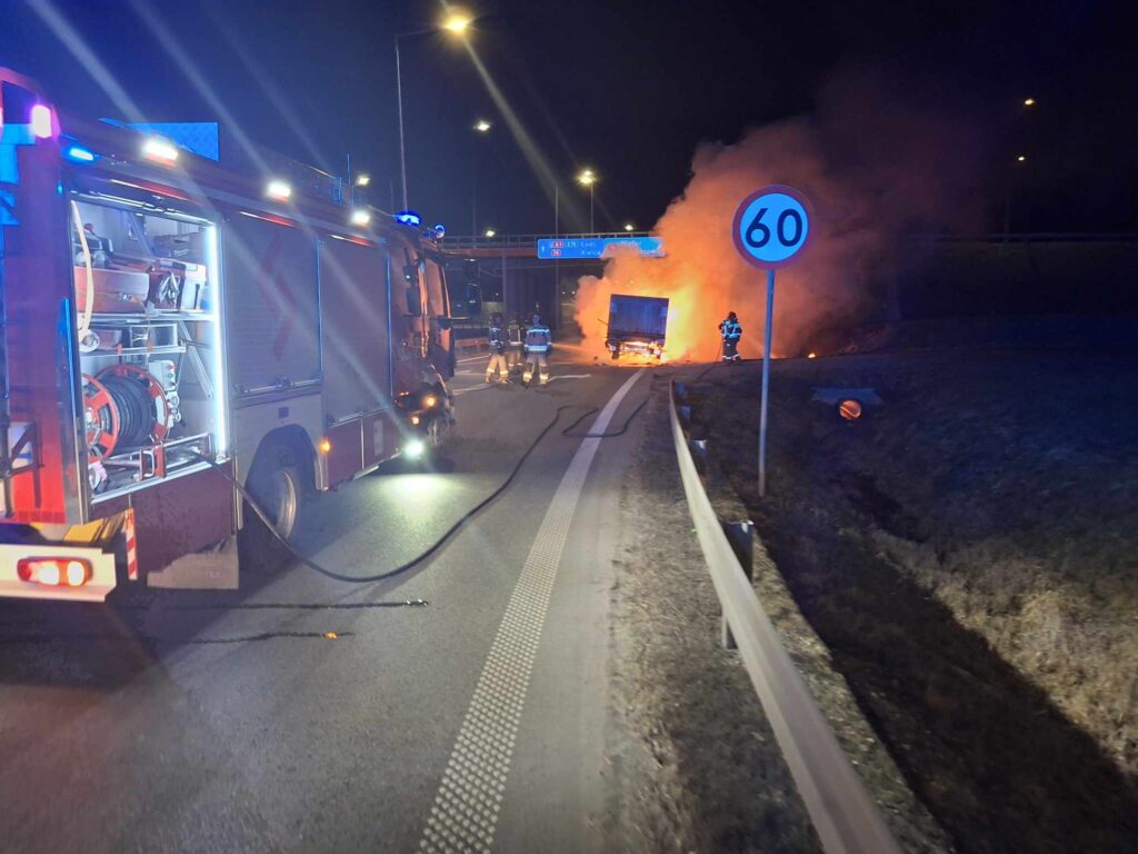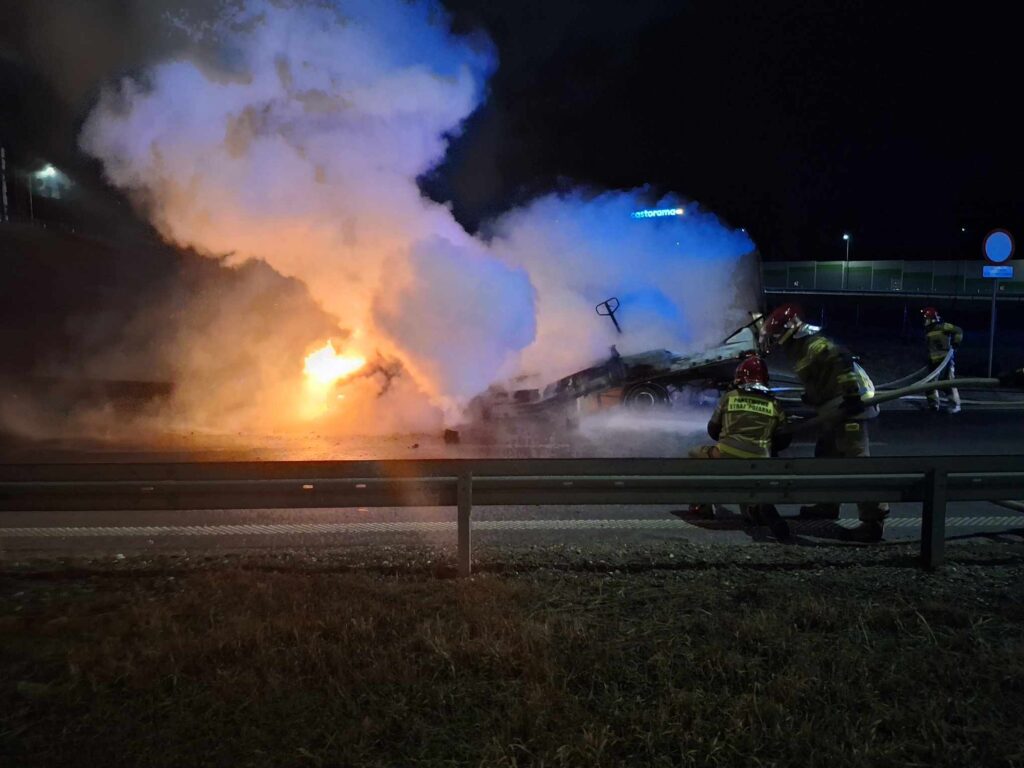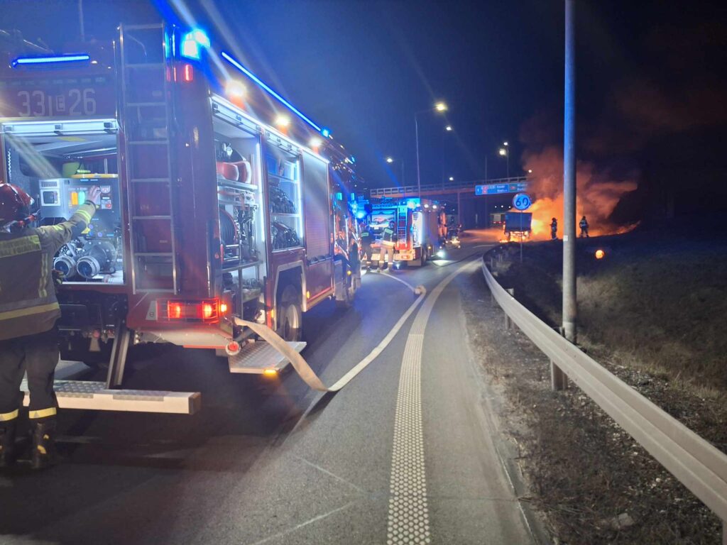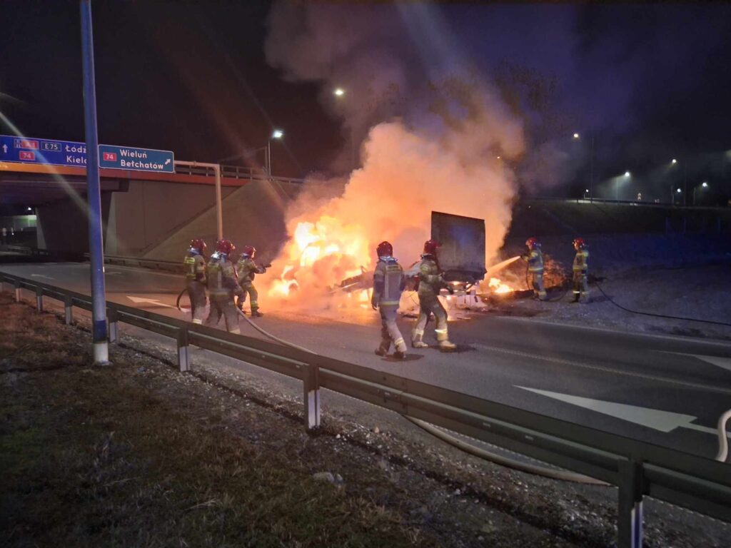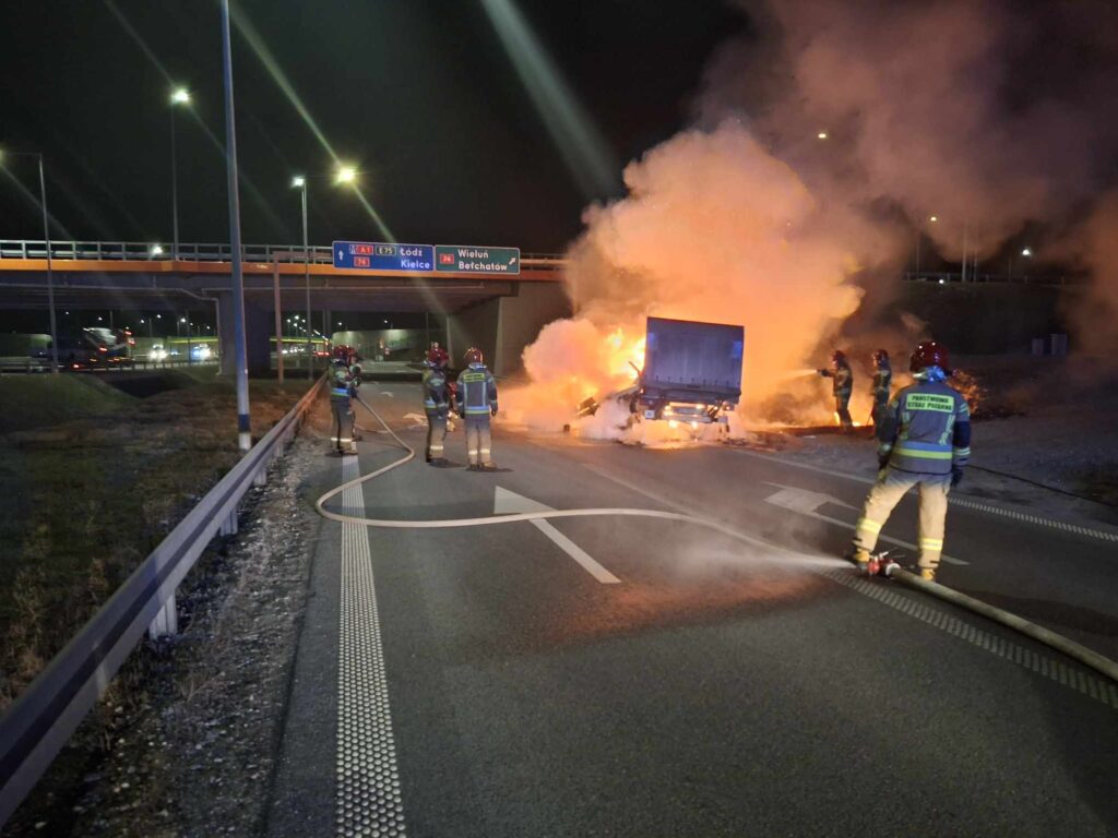 Zgłoszenie o pożarze wpłynęło do piotrkowskich strażaków o 21:12. Pojazd znajdował się na pasie do zjazdu z autostrady, w kierunku Piotrkowa i Bełchatowa. Spaliła się szoferka, a także przestrzeń ładunkowa. Więcej informacji w środę.