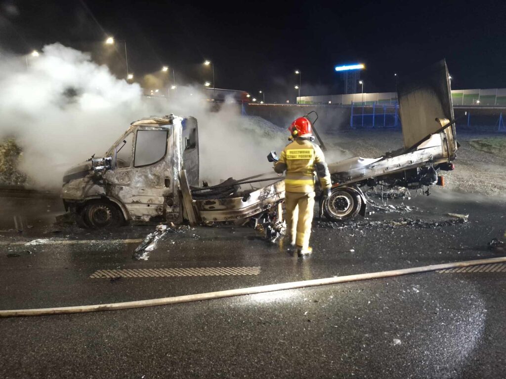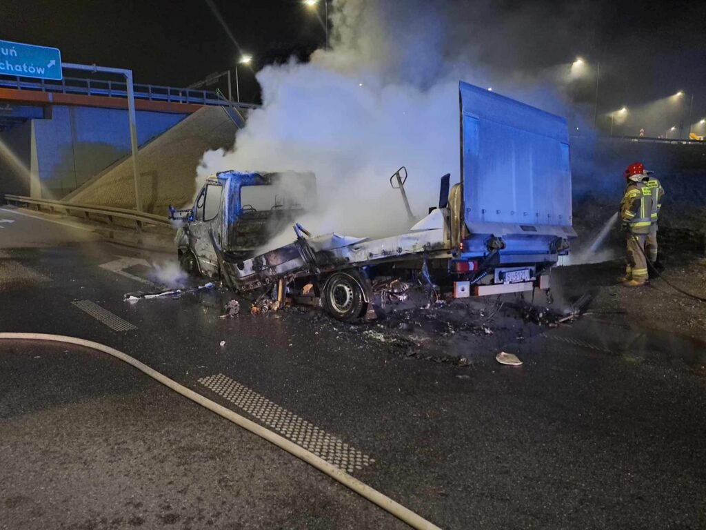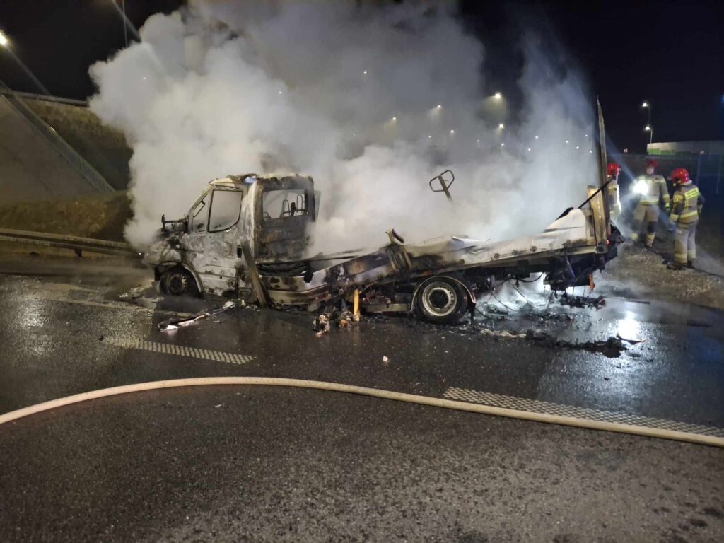 We wtorek (18.03) wieczorem na autostradzie A1 na węźle Piotrków Trybunalski-Południe (dawny węzeł bełchatowski) spłonął samochód dostawczy. Na tę chwilę nie wiadomo, co było przyczyną powstania ognia.