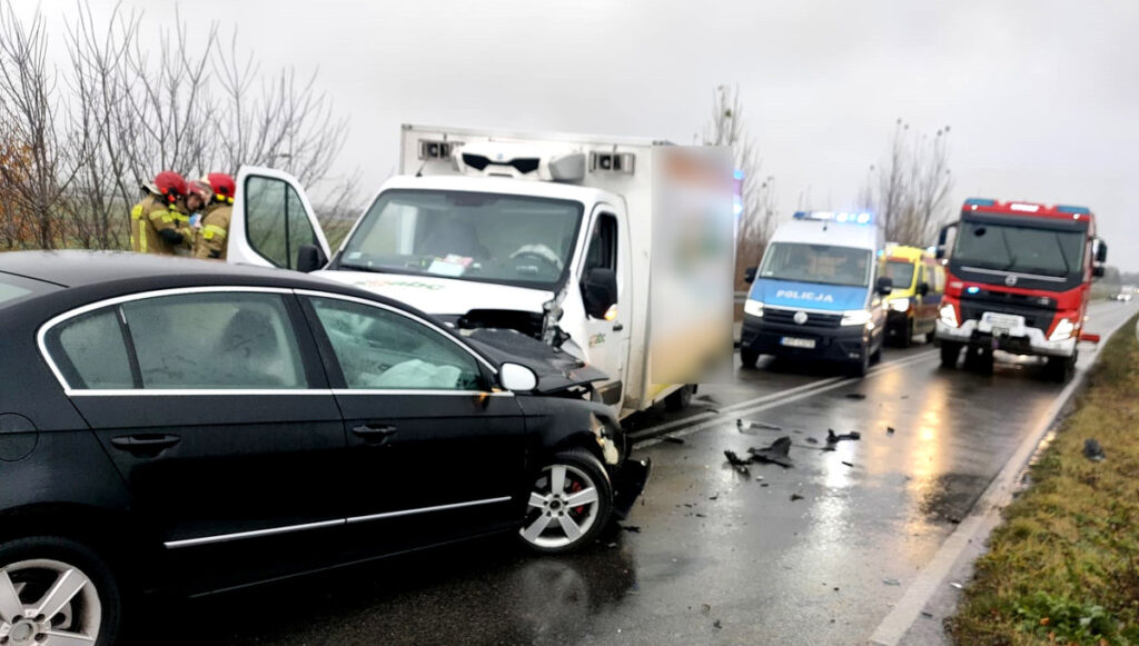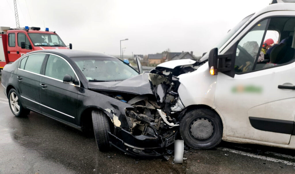Mniej szczęścia miał kierowca volkswagena, który na wiadukcie pomiędzy miejscowością Siomki a Gąski, nie dostosował prędkości do warunków panujących na drodze, utracił panowanie nad pojazdem, a następnie zjechał na przeciwległy pas doprowadzając do zderzenia z kierującym renault. W wyniku poniesionych obrażeń kierowca volkswagena został przewieziony do szpitala. Kierowcy obu pojazdów byli trzeźwi.