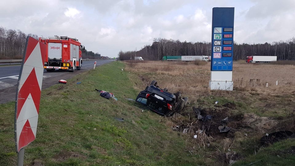 Na 406 kilometrze DK1 w kierunku Łodzi, kierowca samochodu osobowego stracił panowanie nad pojazdem i dachował. Autem podróżowało pięć osób, w tym dwoje dzieci. Wszyscy o własnych siłach przed przybyciem strażaków opuścili rozbite auto. Wśród nich są jednak osoby ranne.