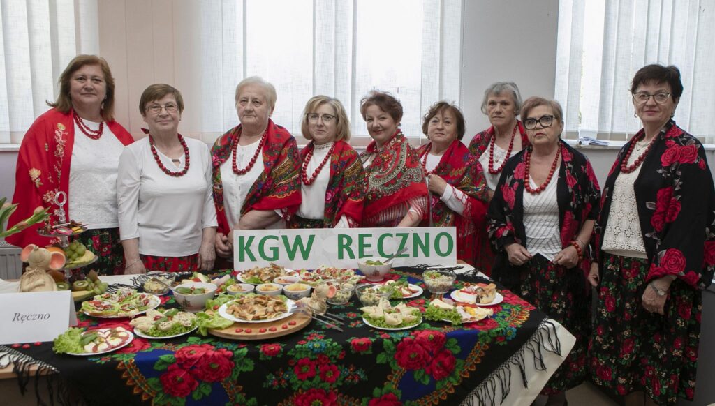 Biesiadowanie przy zastawionych pysznymi potrawami stołach, wspólne śpiewanie tradycyjnych ludowych utworów, a przede wszystkim fantastyczna atmosfera. Tak wyglądał piątkowy wieczór w Sali Wspólny Dom, mieszczącej się w centralnym punkcie Ręczna. Ponad sto osób wzięło udział w odsłonie projektu ,,Warsztaty muzyczne i kulinarne – popularyzacja tradycji ludowych Kół Gospodyń Wiejskich Gminy Ręczno”. Z oferty skorzystało łącznie pięć lokalnych KGW. Projekt zrealizowało Stowarzyszenie Wirtuoz.