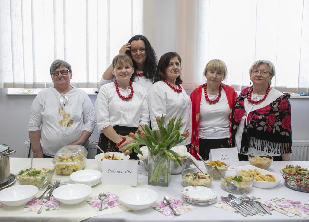 Po części artystycznej przyszła pora na prezentacje zebranych kół. Mieliśmy okazję skosztować dań przygotowanych przez gospodynie z kół w Stobnicy, Stobnicy – Piła, Ręczna, Nowinek oraz Paskrzyna. Przygotowane przysmaki były uwspółcześnionymi wersjami tradycyjnych potraw. Wszystkie bazowały na ziemniakach, które z racji rolniczego charakteru naszego regionu były w przeszłości głównym elementem diety mieszkańców ziemi piotrkowskiej. – Wszyscy widzimy, że tradycyjna ludowa kuchnia jest obecnie w modzie i bardzo często pojawia się na stołach weselnych czy podczas innego rodzaju uroczystości i przyjęć – podkreśla Starosta Piotrkowski.