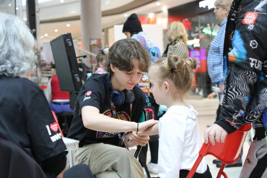 W galerii Focus zabawa rozpoczęła się się o 10:00. Na scenie zaprezentowały się między innymi dzieciaki z piotrkowskich przedszkoli, zespół ludowy „Piotrkowianie” czy klub sportowy taekwon-do. Swoje stoisko przygotowali także ratownicy WOPR oraz policjanci. Dodatkowo można obejrzeć luksusowe samochody, zabytkowe motocykle czy skorzystać darmowego makijażu. Oprócz tego są oczywiście wolontariusze z puszkami, który przez cały dzień zbierać będą datki. – Z WOŚP gram już 7 raz, a mam dopiero 13 lat – mówi Marysia, jedna z wolontariuszek. – Ja tego nie pamiętam, ale rodzice mi opowiadali, że kiedy byłam maleńka, tuż po urodzeniu, leżałam w inkubatorze z serduszkiem Wielkiej Orkiestry Świątecznej Pomocy. Moje życie ratował sprzęt z orkiestry, ponieważ urodziłam się jako wcześniak i potrzebowałam pomocy, dlatego teraz ja pomagam – mówi.