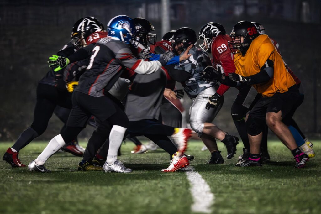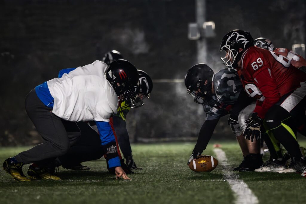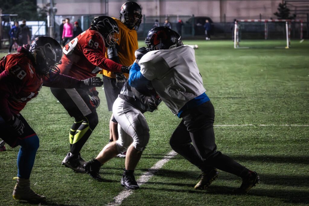 Jako że jestem „rookie” (czyli w skrócie nowy) trenuje w drużynie ataku jak i w drużynie obrony. Na linii ofensywnej (w ataku) moim zadaniem jest utorowanie drogi, by zawodnik z piłką mógł przebiec i zdobyć jardy lub zapewnić odpowiednio dużo czasu, by podał piłkę do przodu. Kiedy jestem w obronie analogicznie staram się wtedy zatrzymać gracza z piłką.
