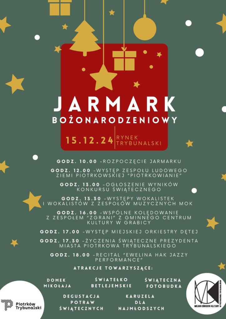 Piotrkowski Jarmark Bożonarodzeniowy to wyjątkowe wydarzenie, które łączy tradycję z nowoczesnością, tworząc niezapomniany klimat nadchodzących Świąt Bożego Narodzenia. Serdecznie zapraszamy 15 grudnia na Rynek Trybunalski. Startujemy o godzinie 10:00 – do zobaczenia!
