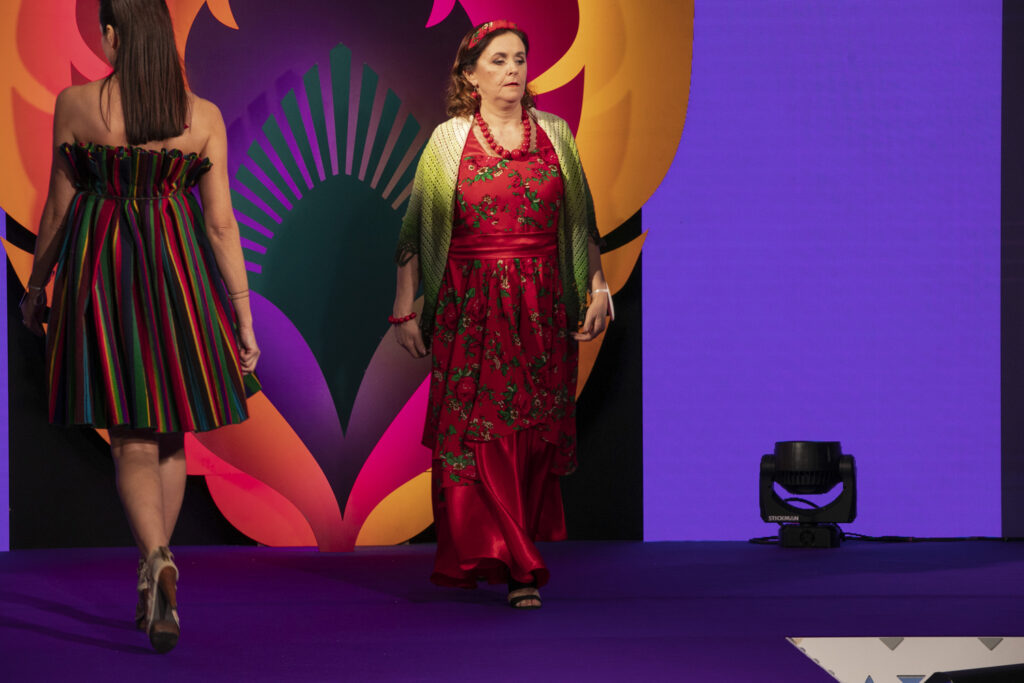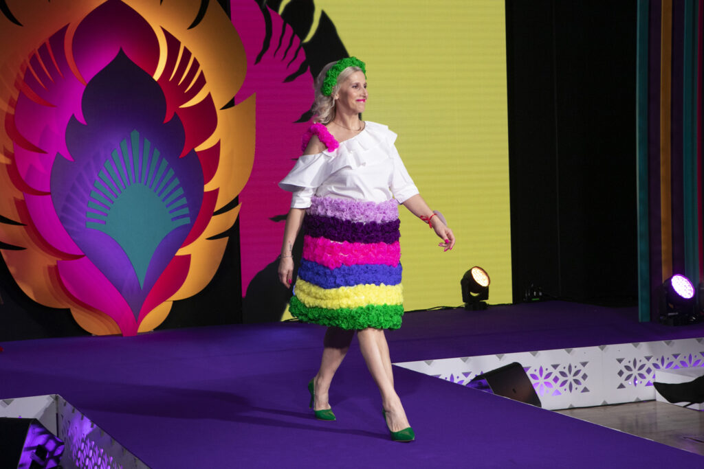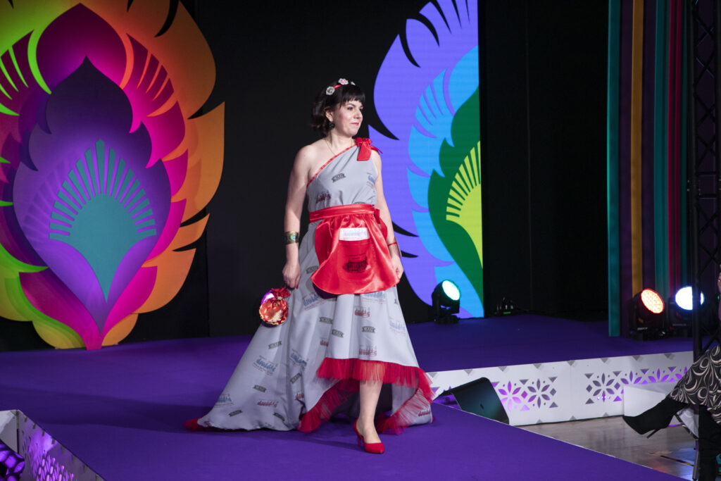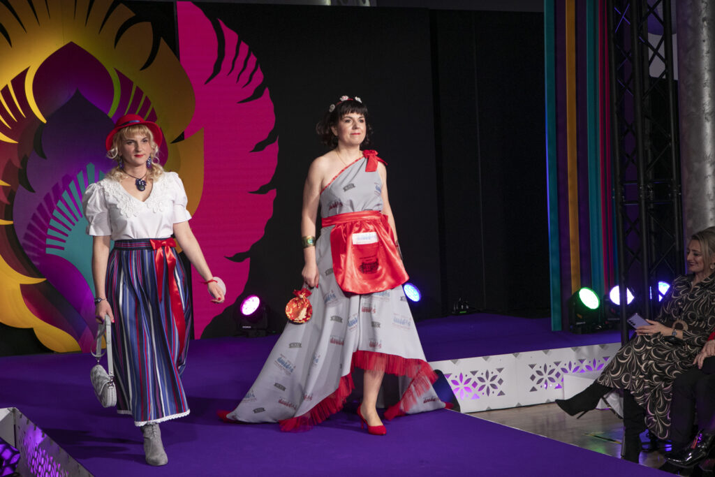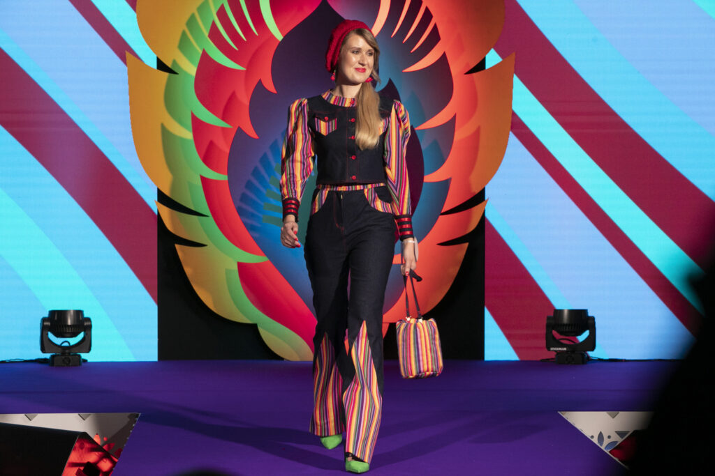 – Nasz strój jest inspirowany lokalnym ubiorem z powiatu radomszczańskiego. Tradycyjny pasiak tego regionu jest użyty zarówno w żakiecie, jak i w sukience. Do tego torebka w maki – opisuje Karolina Cieciura z KGW „Makowe Panienki” z Kietlina.