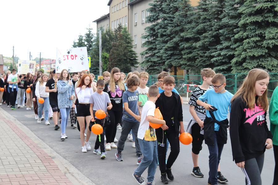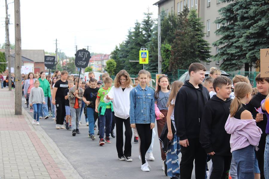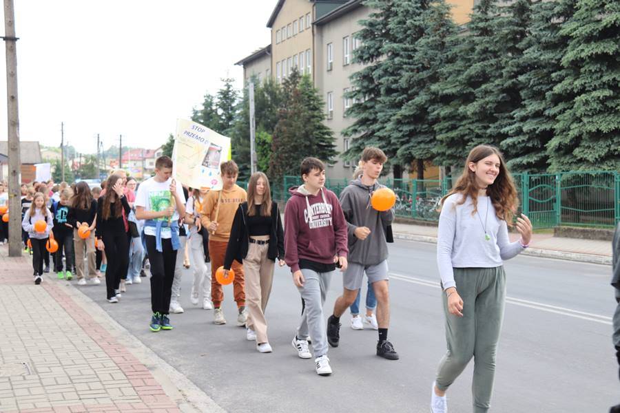 Mieszkańcy gminy Gorzkowice mówią stanowcze ,,NIE przemocy”, dlatego odbywa się taki marsz. Promujemy pozytywne zachowania, chcemy zapobiegać zachowaniom ryzykownym i niechcianym – mówili uczniowie gorzkowickiej podstawówki.