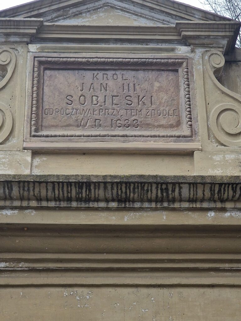 Wchodząc do pałacu od strony parku można zauważyć na bramie łacińską sentencję Honestus rumor alterum est patrimonium (Dobra sława jest drugim dziedzictwem). W tympanonie widnieje korona królewska oraz rodowe herby Poniatowskich i Czartoryskich, pod którymi umieszczono wizerunek Orderu Orła Białego.