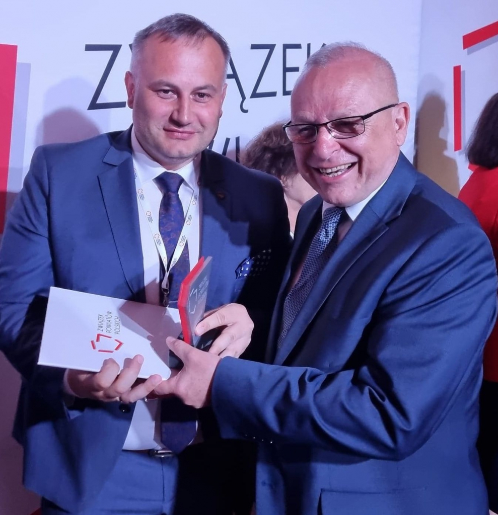 Starosta Piotr Wojtysiak, który wspólnie z przewodniczącym Bernardem Matyszewskim i wiceprzewodniczącym Michałem Szymańskim odebrali statuetkę za zajęcie przez samorząd powiatowy 9. miejsca w Ogólnopolskim Rankingu Związku Powiatów Polskich, który jednocześnie jest najwyżej notowany wśród powiatów województwa łódzkiego.