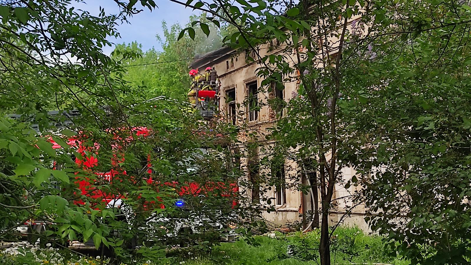 Trwa gaszenie kamienicy przy ulicy 1 Maja w Piotrkowie Trybunalskim. Zgłoszenie do stanowiska kierowania Państwowej Straży Pożarnej wpłynęło o 13:27. Po dojeździe na miejsce pierwszych zastępów strażaków okazało się, że ogniem objęty był cały budynek, a języki ognia wydostają się na dach. Kłęby czarnego dymu z palącej papy, widać było z każdego miejsca w mieście. Z ogniem walczyli strażacy z Piotrkowa, oraz druhowie z okolicznych jednostek OSP. W sumie to 6 zastępów.