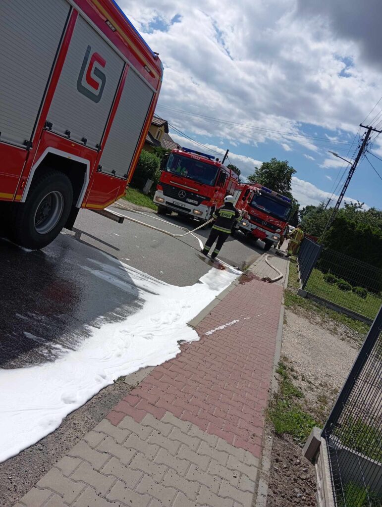 Po przybyciu strażaków na miejsce zdarzenia, zastali oni pojazd już poza garażem. Samochód i pomieszczenie zostało ugaszone. Ranna została jedna osoba, która wyprowadziła seata na zewnątrz. Gdyby nie to, pożar byłby znacznie trudniej opanować. Na miejscu byli strażacy z JRG Piotrków a także OSP Jarosty i OSP Rękoraj.