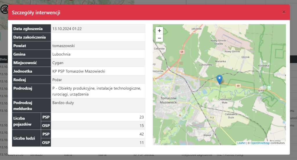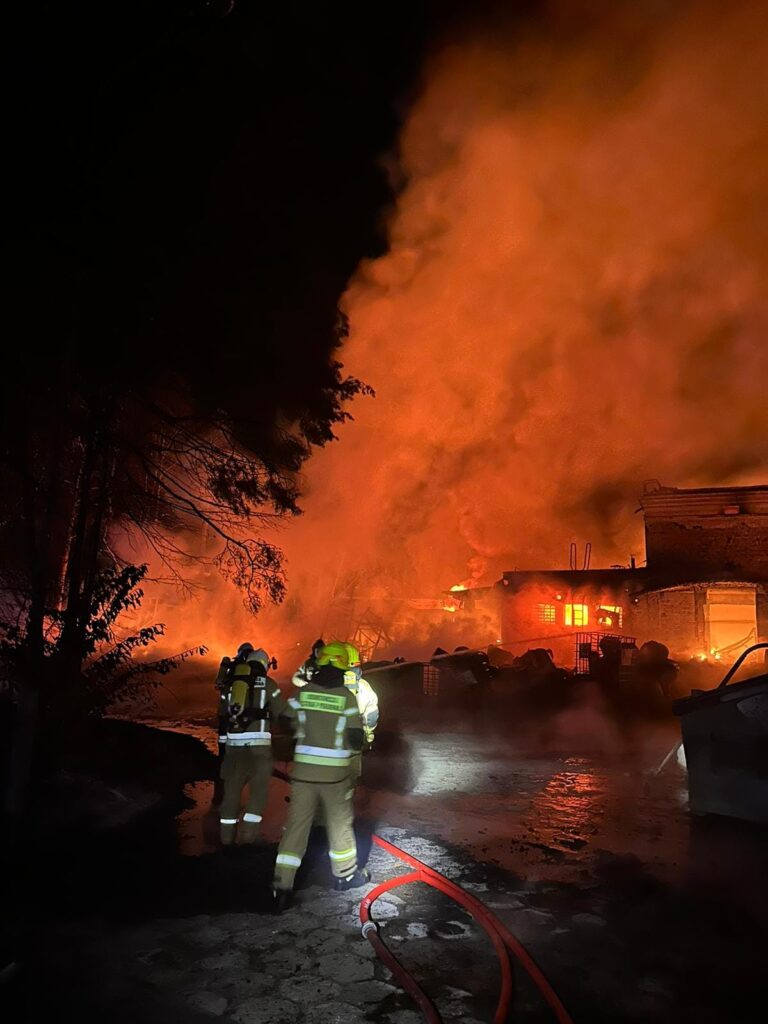 Pożar wybuchł w pomieszczeniach produkcyjnych, w których gromadzone były pojemniki z olejami i smarami, tak zwane mauzery, po 1000 litrów każdy. Na miejscu pracowało blisko 40 zastępów PSP i OSP. W wyniku powstania ognia, całkowicie spłonęły budynki magazynowe i produkcyjne. Według naszych informacji, nie było osób poszkodowanych. Przyczyna powstania ognia nie jest jeszcze znana.