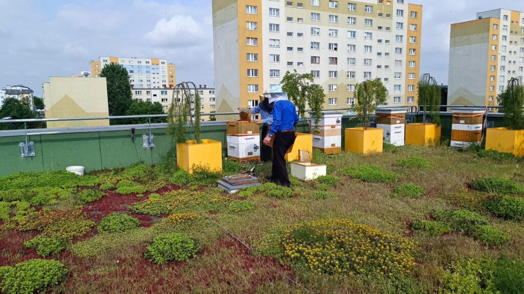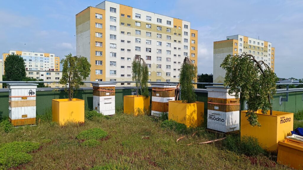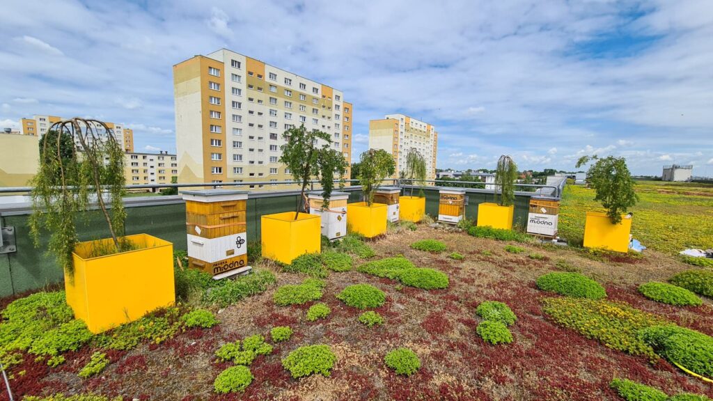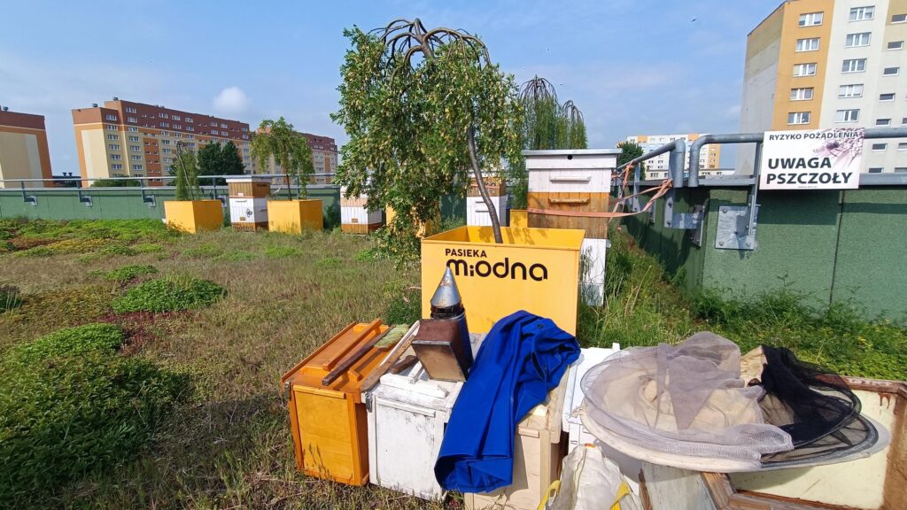 Miodna pasieka Focus Mall w Piotrkowie jest posadowiona na zielonej części dachu galerii. Jest to ponad 10 tys. mkw. powierzchni biologicznie czynnej, na której rosną kwitnące rozchodniki. Liczy 5 uli, w których mieszka około 250 tys. pszczół popularnej rasy pszczół kraińskich (tzw. krainka). Są to pszczoły łagodne, które świetnie odnajdują się w środowisku miejskim. W ciągu roku odbywają się średnio 3 miodobrania.