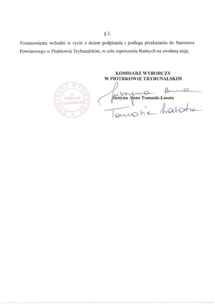 Zgodnie z postanowieniami Komisarza Wyborczego w Piotrkowie Trybunalskim w sprawie zwołania pierwszych sesji Rady Powiatu Piotrkowskiego oraz Rady Miasta Piotrkowa Trybunalskiego, kadencji przypadającej na lata 2024-2029, odbędą się one odpowiednio: 2 i 6 maja 2024 r.