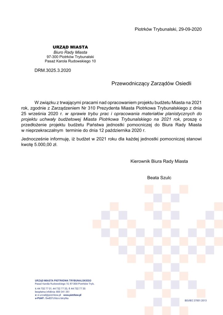Nie 6 307 złotych rocznie, a 5 000 będą miały w przyszłym roku do dyspozycji Rady Osiedli w Piotrkowie Trybunalskim. Pismo o obcięciu budżetu trafiło do Zarządów Rad we wtorek.