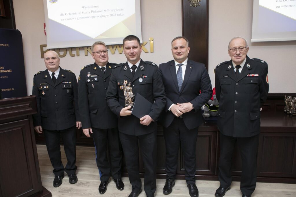 Ubiegłoroczną działalność w zakresie ochrony przeciwpożarowej i akcji ratowniczych podsumowano podczas Narady rocznej Starosty Powiatu Piotrkowskiego, która odbyła się w piotrkowskim starostwie. W podziękowaniu za całoroczną służbę starosta Piotr Wojtysiak wraz z Łódzkim Komendantem Wojewódzkim Państwowej Straży Pożarnej nadbrygadierem Grzegorzem Janowskim, Prezesem Zarządu Oddziału Powiatowego Związku Ochotniczych Straży Pożarnych w Piotrkowie Trybunalskim druhem Tadeuszem Karczem i Komendantem Miejskim Państwowej Straży Pożarnej w Piotrkowie Trybunalskim st. bryg. Pawłem Delą, nagrodził druhów, jednostki OSP oraz młodzieżowe drużyny pożarnicze, którzy wyróżnili się swoją działalnością w strukturach OSP w 2023 roku.