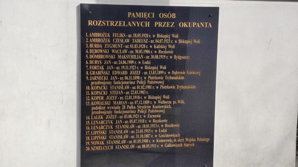 – Mamy tutaj tablicę poświęconą grupie tych polskich patriotów. Z relacji które po wojnie zeznawali żandarmi i funkcjonariusze „granatowej policji” wynikało, że w trakcie tej egzekucji, podczas rozstrzeliwania więźniów, oni wznosili patriotyczne hasła na cześć Polski i przeciwko hitlerowskim okupantom. Po tym morderstwie po rozstrzelaniu tych Polaków, ich ciała wywieziono ciężarówkami do lasu rakowskiego i tam pogrzebano. Po wyzwoleniu Piotrkowa dokonano ekshumacji ciał, i to właśnie ich nazwiska są wymienione na tej pamiątkowej tablicy. – dodaje A.Ostrowski.