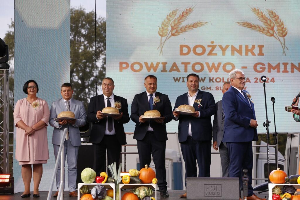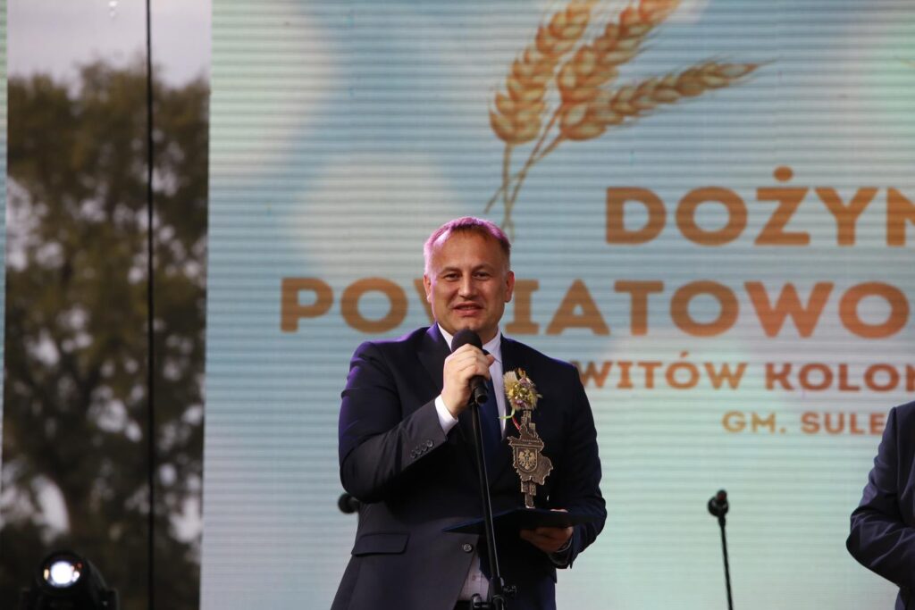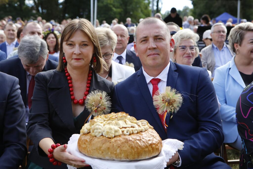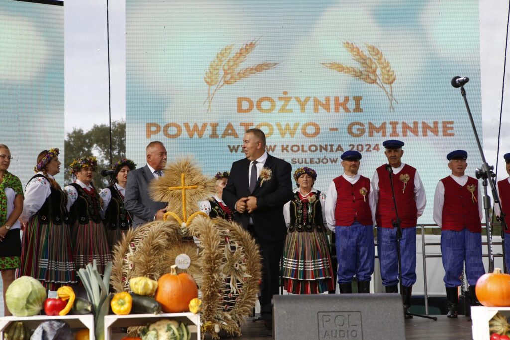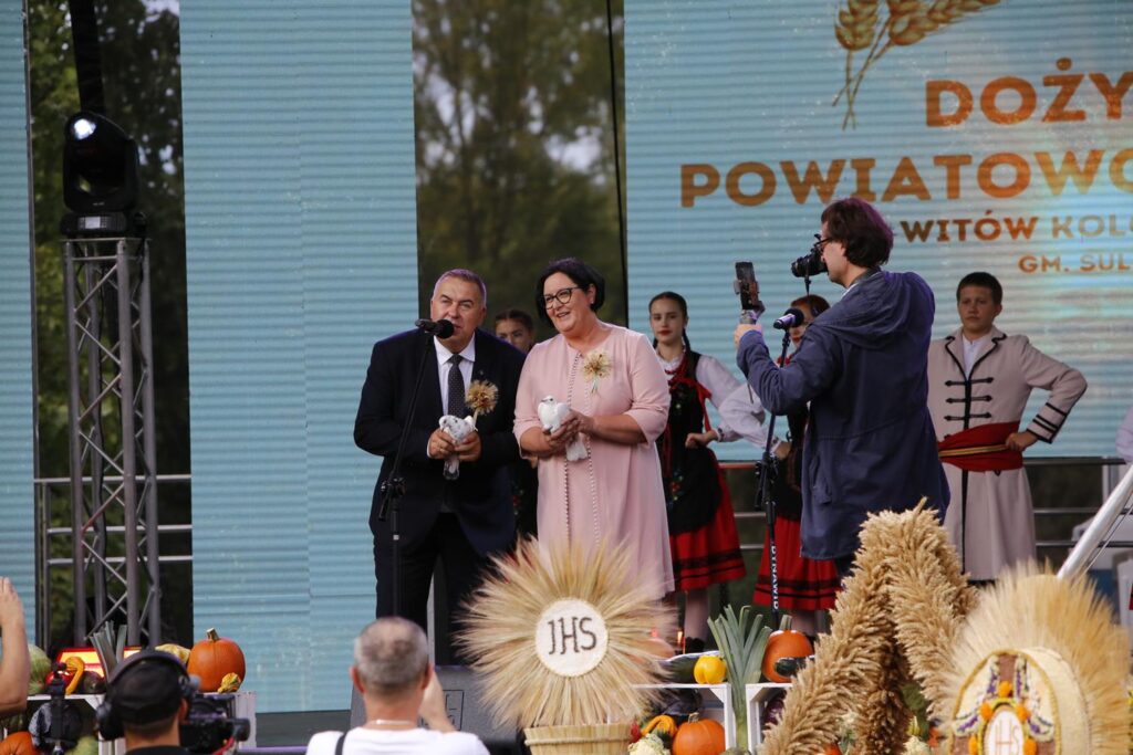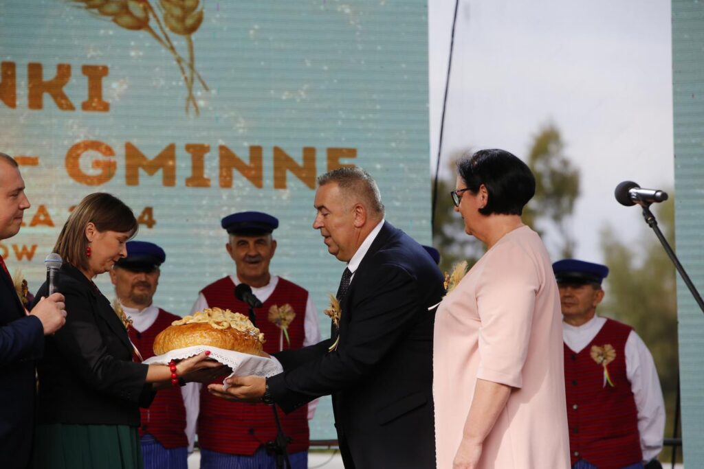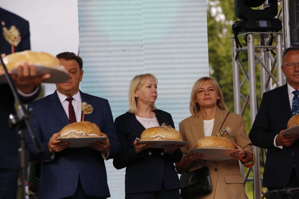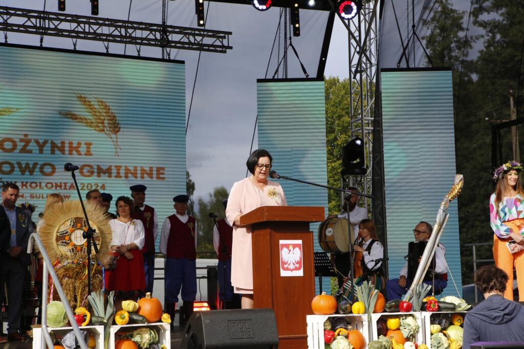 Do zebranych zwróciła się także burmistrz Sulejowa, Dorota Jankowska. – Dziękujemy dziś za plony w 2024 roku, a cytując papieża Jana Pawła II: „Oddajcie hołd spracowanym rękom polskiego rolnika, tym rękom, które w trudnej, ciężkiej ziemi wydobywały chleb dla kraju. W chwilach zagrożenia były gotowe tej ziemi strzec i bronić”. Oddajemy szacunek i podziękowanie. Dożynki to jeden z najpiękniejszych dni w roku dla rolnika. Święto plonów i radości, dzisiejsze święto jest niestety w cieniu dużego dramatu, który się dzieje na południu Polski. Dużo niepokoju jest w komunikatach meteorologicznych. Jak państwo pamiętają, gmina Sulejów przeżyła powódź w 2010 roku, my też mamy jeden, jedyny most w naszym mieście i mamy świadomość, co by to dla nas znaczyło, gdybyśmy ten most stracili. Dlatego dzisiaj solidaryzujemy się bardzo mocno ze wszystkimi, którzy przeżywają dramat powodzi, deklarując, że jeśli będziemy potrzebni, jesteśmy do dyspozycji i na pewno solidarnie wesprzemy. W tej chwili nic nie wskazuje, żeby naszej gminie groziło niebezpieczeństwo, ale śledzimy bardzo uważnie komunikaty, mamy również plan działania i chciałabym państwa zapewnić, że w razie jakiegokolwiek zagrożenia, mogą państwo liczyć na nasze pełne zaangażowanie. Drodzy rolnicy, nieprzewidywalność warunków atmosferycznych to codzienność waszej pracy, dożynki przypominają nam, że to dzięki ciężkiej pracy rolnika chleb codziennie pojawia się na naszym stole. Dziękujemy wam za to. Tereny rolnicze w gminie Sulejów zajmują 48% jej powierzchni. Przez ostatnie cztery miesiące bardzo staraliśmy się o was zadbać, tak, żeby na początek skomunikować mieszkańców tych terenów z Sulejowem i Piotrkowem, likwidując wykluczenia komunikacyjne. Jesteśmy w kontakcie z podmiotami podłączającymi światłowód, w przyszłym roku cały teren gminy będzie pokryty szybkim Internetem. Wiem, że to dla państwa było bardzo ważne, szczególnie na terenach rolniczych, odległych od Sulejowa. Planujemy również szereg inwestycji drogowych, które umożliwią poruszanie się, między innymi po drogach dojazdowych do pól. Wszystko to po to, by podnieść jakość życia mieszkańców naszej gminy. Rolnicy, pszczelarze, producenci żywności, dziękują wam za wasz trud, za pracę i życzę wam dobrej pogody i dobrych plonów w kolejnych latach – dodała Dorota Jankowska.