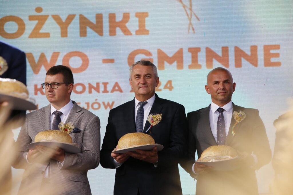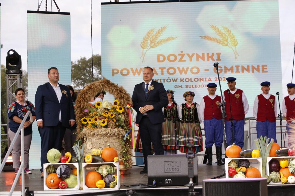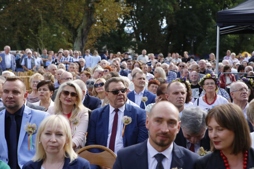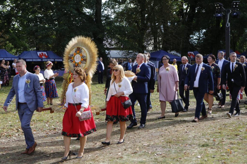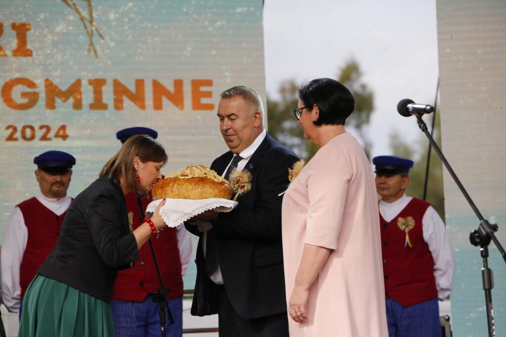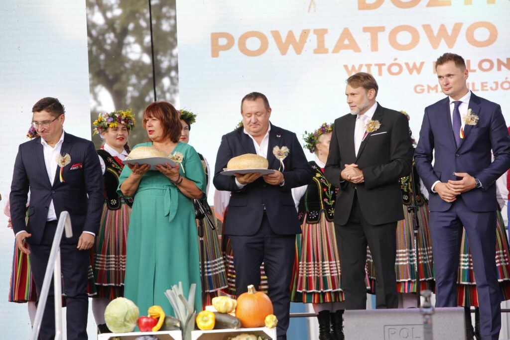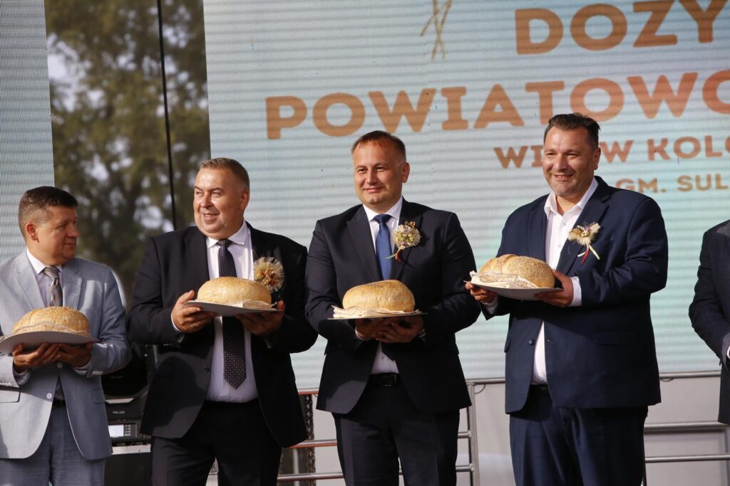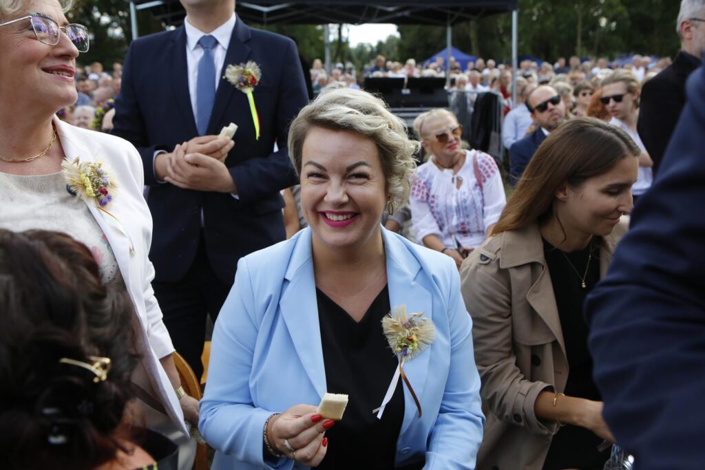 Do zebranych zwróciła się także burmistrz Sulejowa, Dorota Jankowska. – Dziękujemy dziś za plony w 2024 roku, a cytując papieża Jana Pawła II: „Oddajcie hołd spracowanym rękom polskiego rolnika, tym rękom, które w trudnej, ciężkiej ziemi wydobywały chleb dla kraju. W chwilach zagrożenia były gotowe tej ziemi strzec i bronić”. Oddajemy szacunek i podziękowanie. Dożynki to jeden z najpiękniejszych dni w roku dla rolnika. Święto plonów i radości, dzisiejsze święto jest niestety w cieniu dużego dramatu, który się dzieje na południu Polski. Dużo niepokoju jest w komunikatach meteorologicznych. Jak państwo pamiętają, gmina Sulejów przeżyła powódź w 2010 roku, my też mamy jeden, jedyny most w naszym mieście i mamy świadomość, co by to dla nas znaczyło, gdybyśmy ten most stracili. Dlatego dzisiaj solidaryzujemy się bardzo mocno ze wszystkimi, którzy przeżywają dramat powodzi, deklarując, że jeśli będziemy potrzebni, jesteśmy do dyspozycji i na pewno solidarnie wesprzemy. W tej chwili nic nie wskazuje, żeby naszej gminie groziło niebezpieczeństwo, ale śledzimy bardzo uważnie komunikaty, mamy również plan działania i chciałabym państwa zapewnić, że w razie jakiegokolwiek zagrożenia, mogą państwo liczyć na nasze pełne zaangażowanie. Drodzy rolnicy, nieprzewidywalność warunków atmosferycznych to codzienność waszej pracy, dożynki przypominają nam, że to dzięki ciężkiej pracy rolnika chleb codziennie pojawia się na naszym stole. Dziękujemy wam za to. Tereny rolnicze w gminie Sulejów zajmują 48% jej powierzchni. Przez ostatnie cztery miesiące bardzo staraliśmy się o was zadbać, tak, żeby na początek skomunikować mieszkańców tych terenów z Sulejowem i Piotrkowem, likwidując wykluczenia komunikacyjne. Jesteśmy w kontakcie z podmiotami podłączającymi światłowód, w przyszłym roku cały teren gminy będzie pokryty szybkim Internetem. Wiem, że to dla państwa było bardzo ważne, szczególnie na terenach rolniczych, odległych od Sulejowa. Planujemy również szereg inwestycji drogowych, które umożliwią poruszanie się, między innymi po drogach dojazdowych do pól. Wszystko to po to, by podnieść jakość życia mieszkańców naszej gminy. Rolnicy, pszczelarze, producenci żywności, dziękują wam za wasz trud, za pracę i życzę wam dobrej pogody i dobrych plonów w kolejnych latach – dodała Dorota Jankowska.