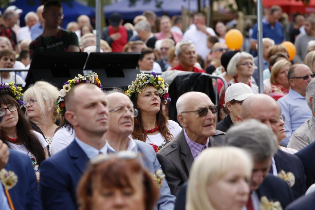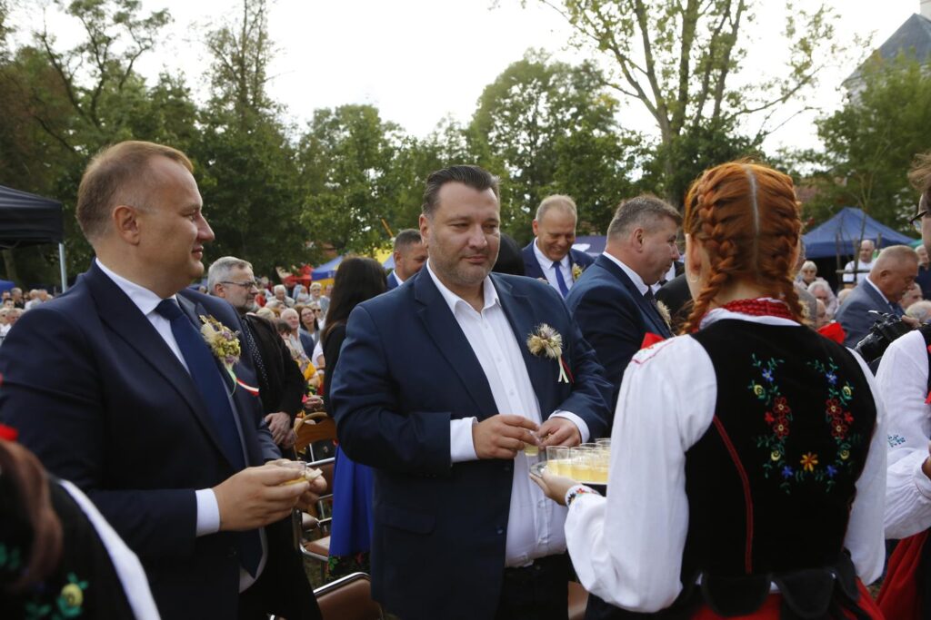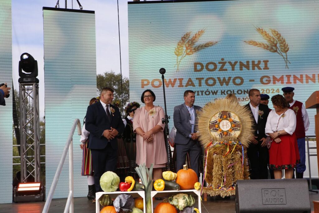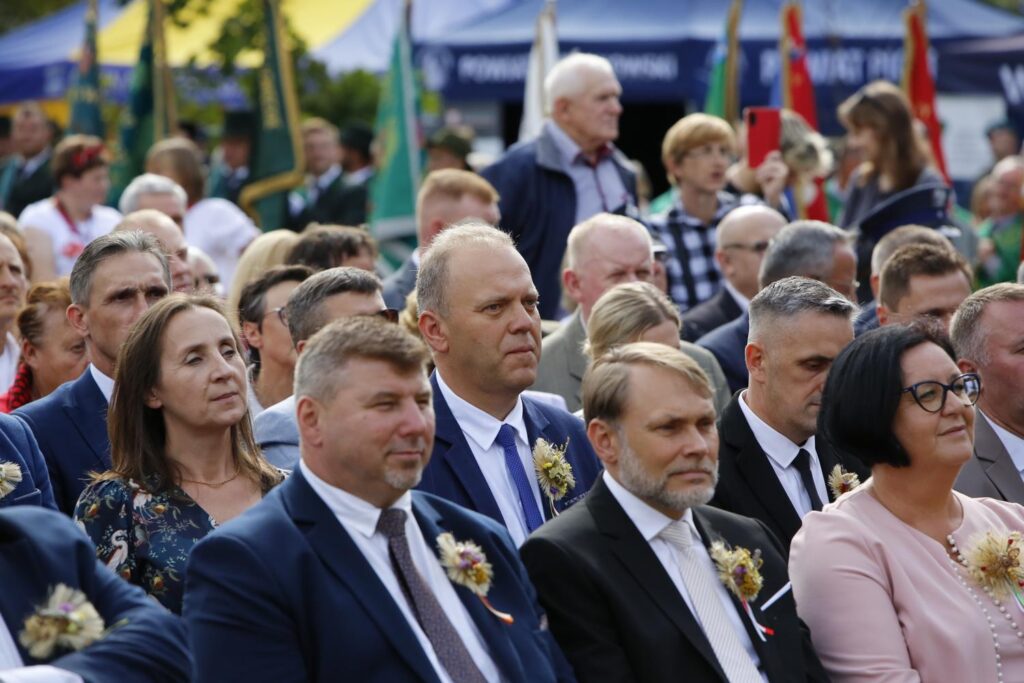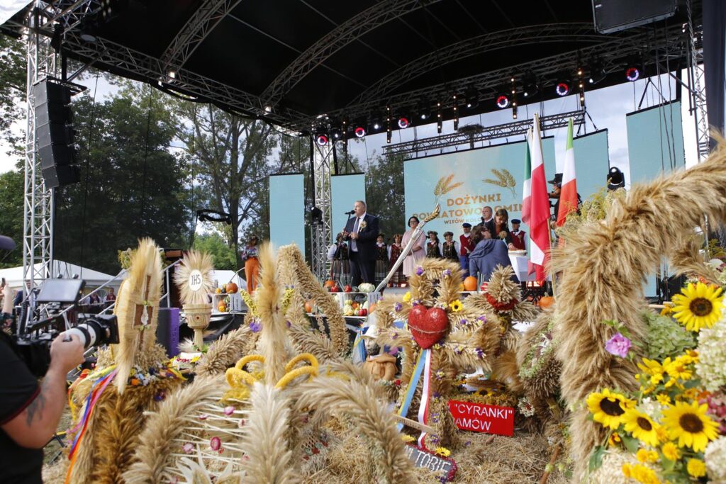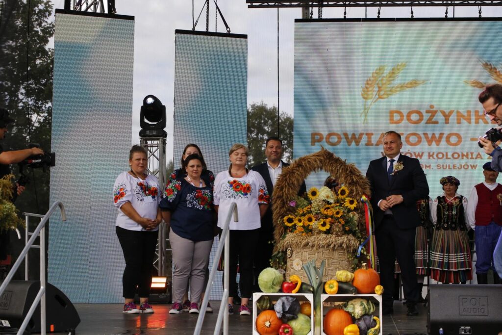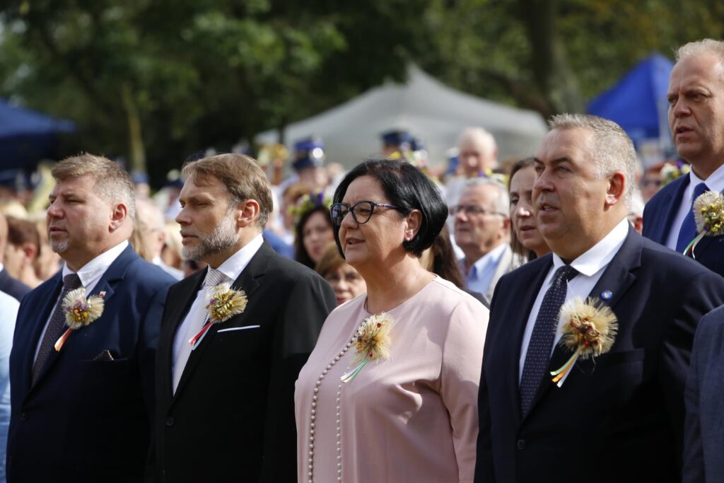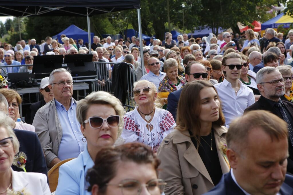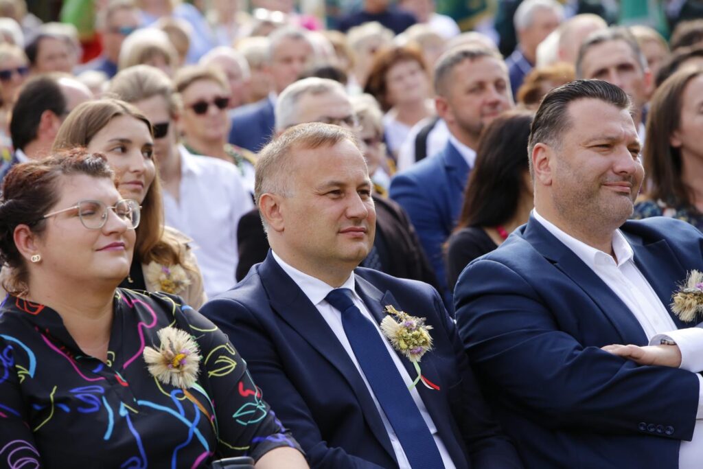 Do zebranych zwróciła się także burmistrz Sulejowa, Dorota Jankowska. – Dziękujemy dziś za plony w 2024 roku, a cytując papieża Jana Pawła II: „Oddajcie hołd spracowanym rękom polskiego rolnika, tym rękom, które w trudnej, ciężkiej ziemi wydobywały chleb dla kraju. W chwilach zagrożenia były gotowe tej ziemi strzec i bronić”. Oddajemy szacunek i podziękowanie. Dożynki to jeden z najpiękniejszych dni w roku dla rolnika. Święto plonów i radości, dzisiejsze święto jest niestety w cieniu dużego dramatu, który się dzieje na południu Polski. Dużo niepokoju jest w komunikatach meteorologicznych. Jak państwo pamiętają, gmina Sulejów przeżyła powódź w 2010 roku, my też mamy jeden, jedyny most w naszym mieście i mamy świadomość, co by to dla nas znaczyło, gdybyśmy ten most stracili. Dlatego dzisiaj solidaryzujemy się bardzo mocno ze wszystkimi, którzy przeżywają dramat powodzi, deklarując, że jeśli będziemy potrzebni, jesteśmy do dyspozycji i na pewno solidarnie wesprzemy. W tej chwili nic nie wskazuje, żeby naszej gminie groziło niebezpieczeństwo, ale śledzimy bardzo uważnie komunikaty, mamy również plan działania i chciałabym państwa zapewnić, że w razie jakiegokolwiek zagrożenia, mogą państwo liczyć na nasze pełne zaangażowanie. Drodzy rolnicy, nieprzewidywalność warunków atmosferycznych to codzienność waszej pracy, dożynki przypominają nam, że to dzięki ciężkiej pracy rolnika chleb codziennie pojawia się na naszym stole. Dziękujemy wam za to. Tereny rolnicze w gminie Sulejów zajmują 48% jej powierzchni. Przez ostatnie cztery miesiące bardzo staraliśmy się o was zadbać, tak, żeby na początek skomunikować mieszkańców tych terenów z Sulejowem i Piotrkowem, likwidując wykluczenia komunikacyjne. Jesteśmy w kontakcie z podmiotami podłączającymi światłowód, w przyszłym roku cały teren gminy będzie pokryty szybkim Internetem. Wiem, że to dla państwa było bardzo ważne, szczególnie na terenach rolniczych, odległych od Sulejowa. Planujemy również szereg inwestycji drogowych, które umożliwią poruszanie się, między innymi po drogach dojazdowych do pól. Wszystko to po to, by podnieść jakość życia mieszkańców naszej gminy. Rolnicy, pszczelarze, producenci żywności, dziękują wam za wasz trud, za pracę i życzę wam dobrej pogody i dobrych plonów w kolejnych latach – dodała Dorota Jankowska.