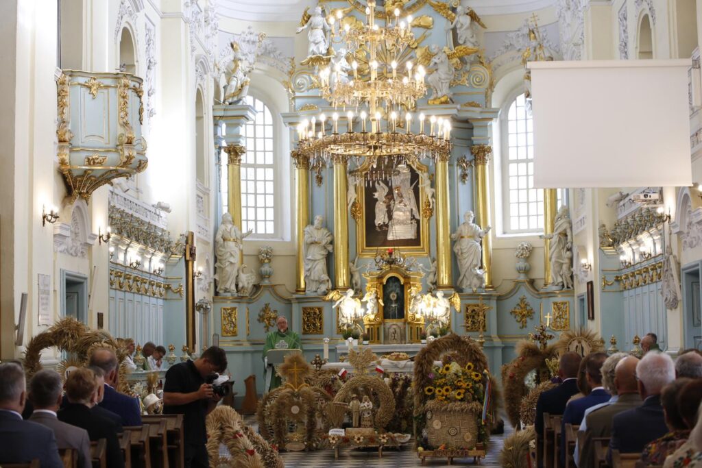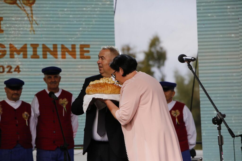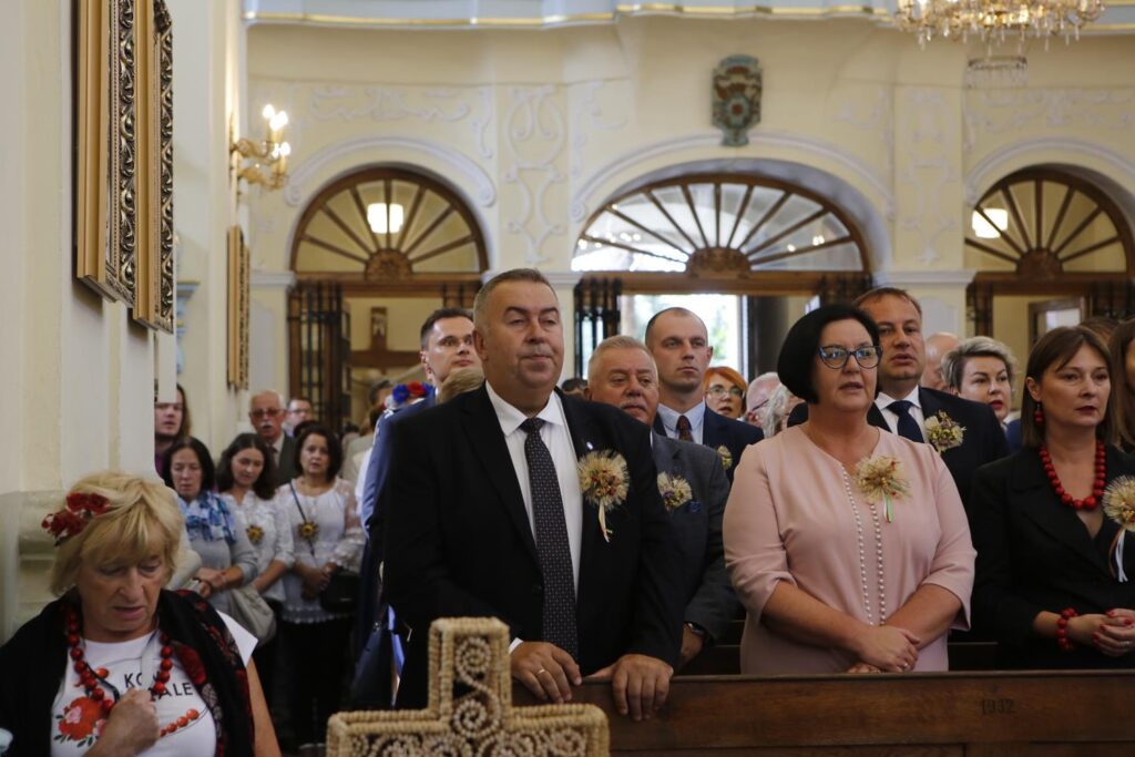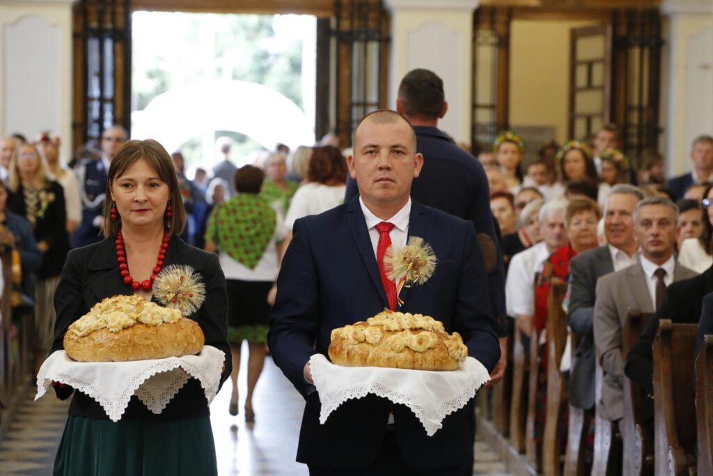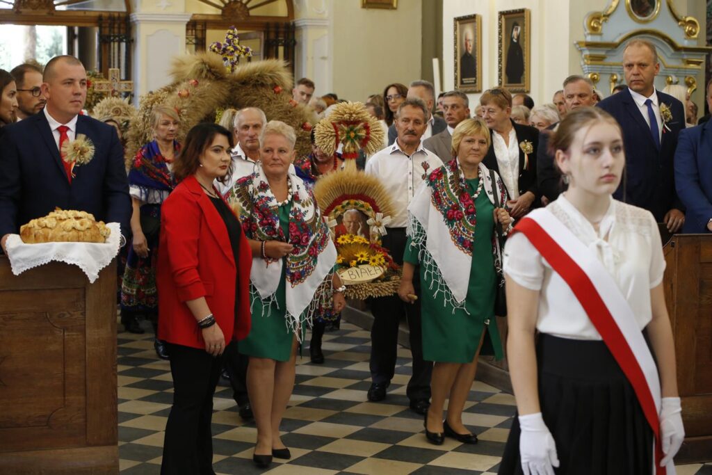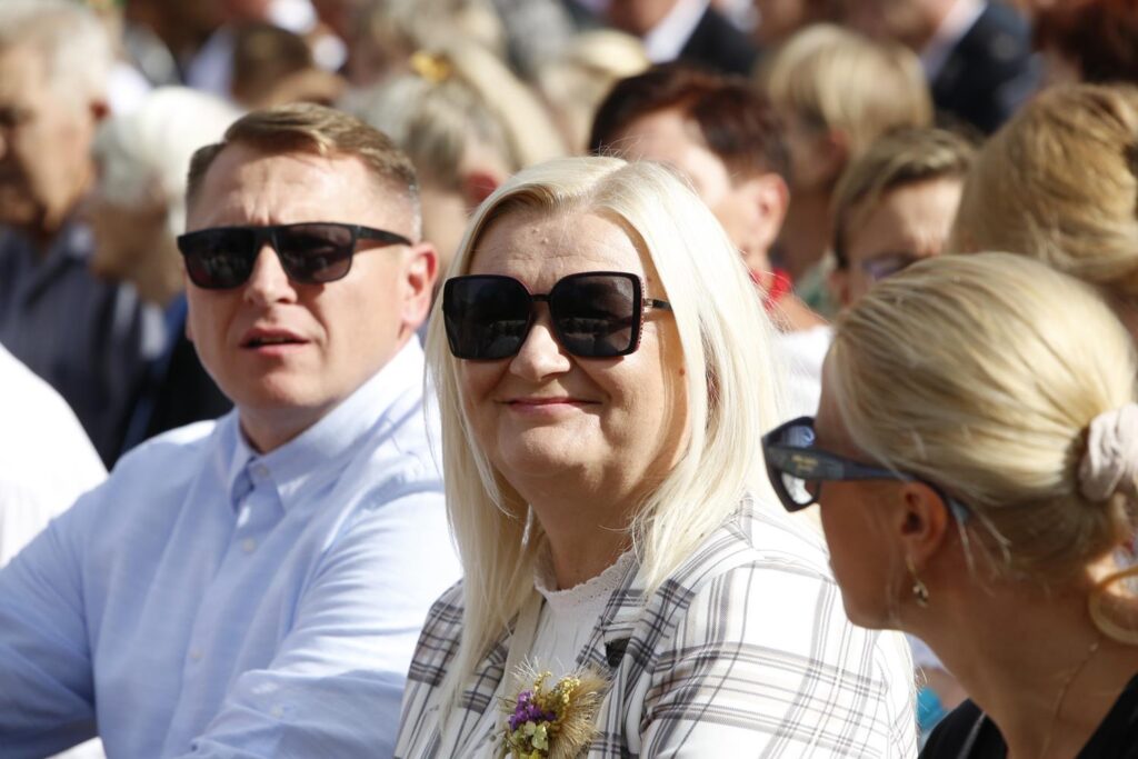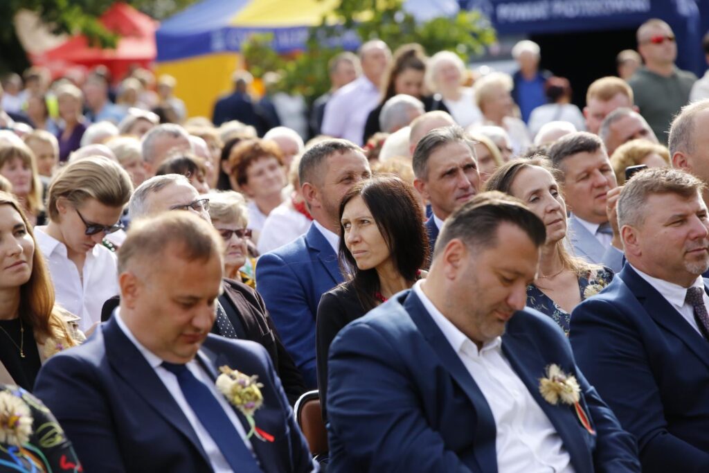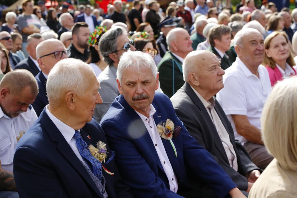 Do zebranych zwróciła się także burmistrz Sulejowa, Dorota Jankowska. – Dziękujemy dziś za plony w 2024 roku, a cytując papieża Jana Pawła II: „Oddajcie hołd spracowanym rękom polskiego rolnika, tym rękom, które w trudnej, ciężkiej ziemi wydobywały chleb dla kraju. W chwilach zagrożenia były gotowe tej ziemi strzec i bronić”. Oddajemy szacunek i podziękowanie. Dożynki to jeden z najpiękniejszych dni w roku dla rolnika. Święto plonów i radości, dzisiejsze święto jest niestety w cieniu dużego dramatu, który się dzieje na południu Polski. Dużo niepokoju jest w komunikatach meteorologicznych. Jak państwo pamiętają, gmina Sulejów przeżyła powódź w 2010 roku, my też mamy jeden, jedyny most w naszym mieście i mamy świadomość, co by to dla nas znaczyło, gdybyśmy ten most stracili. Dlatego dzisiaj solidaryzujemy się bardzo mocno ze wszystkimi, którzy przeżywają dramat powodzi, deklarując, że jeśli będziemy potrzebni, jesteśmy do dyspozycji i na pewno solidarnie wesprzemy. W tej chwili nic nie wskazuje, żeby naszej gminie groziło niebezpieczeństwo, ale śledzimy bardzo uważnie komunikaty, mamy również plan działania i chciałabym państwa zapewnić, że w razie jakiegokolwiek zagrożenia, mogą państwo liczyć na nasze pełne zaangażowanie. Drodzy rolnicy, nieprzewidywalność warunków atmosferycznych to codzienność waszej pracy, dożynki przypominają nam, że to dzięki ciężkiej pracy rolnika chleb codziennie pojawia się na naszym stole. Dziękujemy wam za to. Tereny rolnicze w gminie Sulejów zajmują 48% jej powierzchni. Przez ostatnie cztery miesiące bardzo staraliśmy się o was zadbać, tak, żeby na początek skomunikować mieszkańców tych terenów z Sulejowem i Piotrkowem, likwidując wykluczenia komunikacyjne. Jesteśmy w kontakcie z podmiotami podłączającymi światłowód, w przyszłym roku cały teren gminy będzie pokryty szybkim Internetem. Wiem, że to dla państwa było bardzo ważne, szczególnie na terenach rolniczych, odległych od Sulejowa. Planujemy również szereg inwestycji drogowych, które umożliwią poruszanie się, między innymi po drogach dojazdowych do pól. Wszystko to po to, by podnieść jakość życia mieszkańców naszej gminy. Rolnicy, pszczelarze, producenci żywności, dziękują wam za wasz trud, za pracę i życzę wam dobrej pogody i dobrych plonów w kolejnych latach – dodała Dorota Jankowska.
