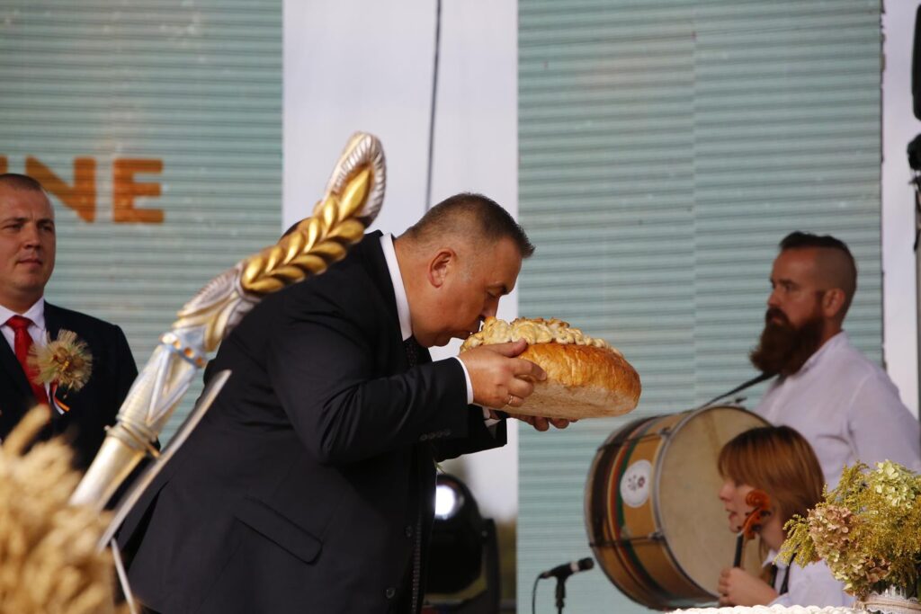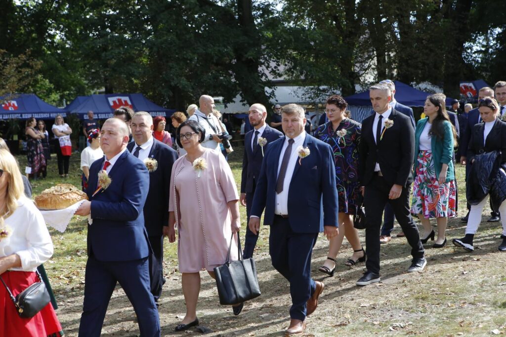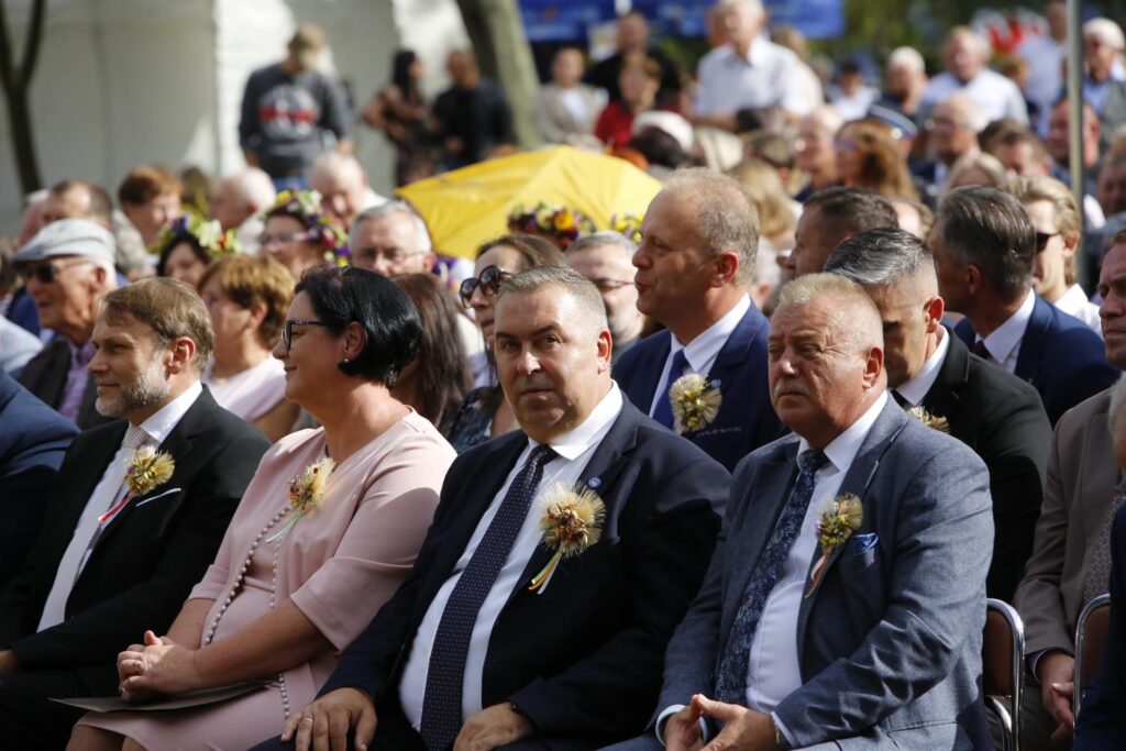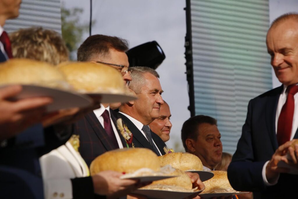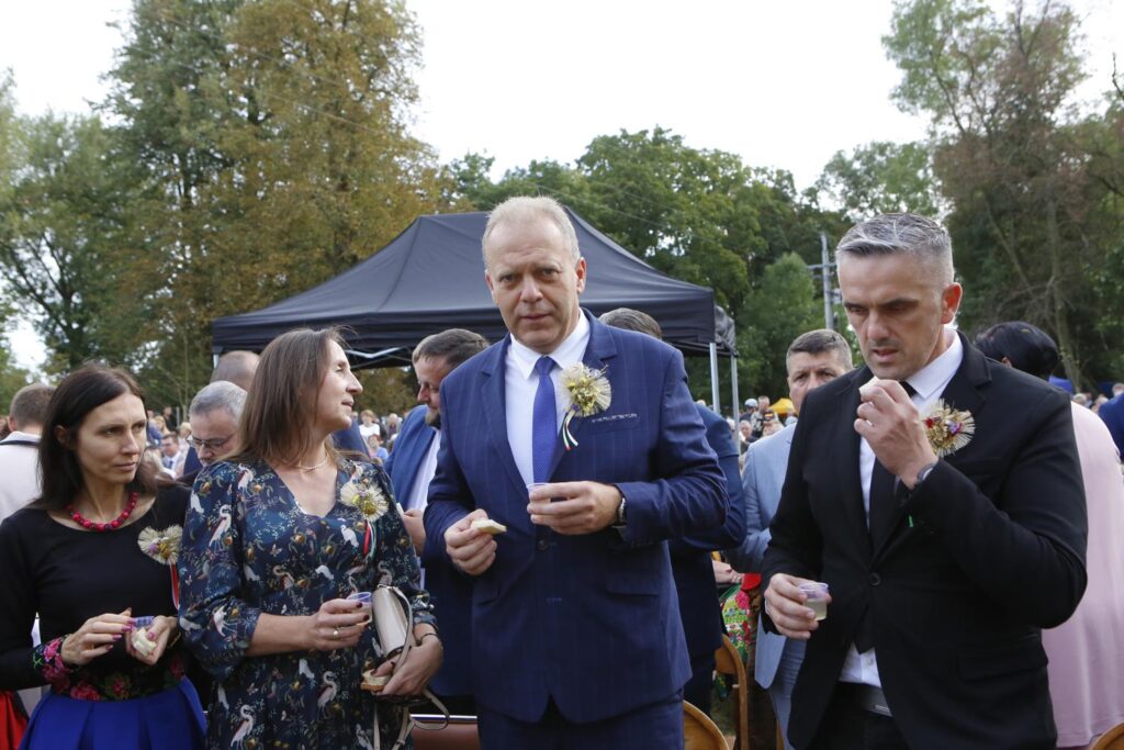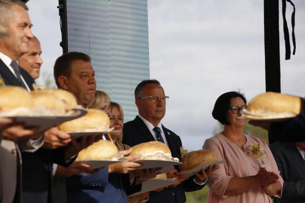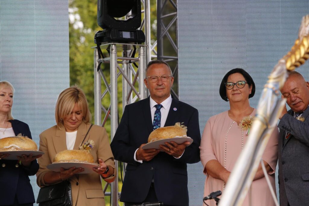 – Dziękuję między innymi wszystkim kołom gospodyń, które tak się napracowały, dlatego nie wyobrażałem sobie, żeby te Dożynki się nie odbyły, a były rekomendacje, żeby je odwołać. Powiedziałem panu wojewodzie, że jeśli będzie nam zagrażała powódź, to podejmiemy taką decyzję nawet w ostatniej chwili, żeby nikomu się nic nie stało, ale jak państwo widzą, nikomu się nic nie stanie, bo dzisiaj możemy przy promieniach słonecznych państwu dziękować. Szanowni państwo, jako starosta piotrkowski chciałbym łączyć, ale nie w złości i gniewie, tylko w miłości i chlebie, mieszkańców ziemi piotrkowskiej – powiedział Piotr Łączny.